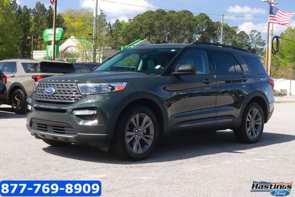 Certified. Forged Green Metallic 2021 Ford Explorer XLT 4WD 10-Speed Automatic 2.3L EcoBoost I-4 Explorer XLT, Ford Blue Advantage Blue Certified Certified, 4D Sport Utility, 2.3L EcoBoost I-4, 10-Speed Automatic, 4WD, Forged Green Metallic, Light Slate w/ActiveX Captain's Chairs, Wheels: 20" 10-Spoke Carbonized Gray-Painted, 1st Row Heated Seats, 3.58 Non-Limited-Slip Rear Axle Ratio, 3rd row seats: bench, 4-Wheel Disc Brakes, 6 Speakers, ABS brakes, Acoustic-Laminated Front Side Windows, Active Cruise Control, ActiveX Captain's Chairs, Air Conditioning, Alloy wheels, AM/FM radio: SiriusXM, AM/FM Stereo, Auto High-beam Headlights, Automatic temperature control, Brake assist, Bumpers: body-color, Class III Trailer Tow Package, Compass, Delay-off headlights, Driver door bin, Driver vanity mirror, Dual front impact airbags, Dual front side impact airbags, Electronic Stability Control, Emergency communication system: SYNC 3 911 Assist, Equipment Group 202A, Evasive Steering Assist, Exterior Parking Camera Rear, Ford Co-Pilot360 Assist+, FordPass Connect, Four wheel independent suspension, Front anti-roll bar, Front Bucket Seats, Front Center Armrest, Front dual zone A/C, Front reading lights, Fully automatic headlights, Heated door mirrors, Heated front seats, Heated Steering Wheel, Illuminated entry, Intelligent Adaptive Cruise Control, Knee airbag, Leather steering wheel, LED Fog Lamps, Low tire pressure warning, Navigation System, Occupant sensing airbag, Outside temperature display, Overhead airbag, Overhead console, Panic alarm, Passenger door bin, Passenger vanity mirror, Power door mirrors, Power driver seat, Power Liftgate, Power passenger seat, Power steering, Power windows, Rear air conditioning, Rear anti-roll bar, Rear reading lights, Rear window defroster, Rear window wiper, Remote keyless entry, Remote Start System, Roof rack: rails only, Security system, SelectShift Capability w/Paddle Shifters, Speed control, Speed Sign Recognition, Speed-sensing steering, Speed-Sensitive Wipers, Split folding rear seat, Spoiler, Steering wheel mounted audio controls, SYNC 3 Communications & Entertainment System, SYNC 3/Apple CarPlay/Android Auto, Tachometer, Telescoping steering wheel, Tilt steering wheel, Traction control, Trip computer, Twin Panel Moonroof, Unique Cloth Captain's Chairs, Variably intermittent wipers, Voice-Activated Touchscreen Navigation System, XLT Sport Appearance Package, Explorer XLT, 4D Sport Utility, 2.3L EcoBoost I-4, 10-Speed Automatic, 4WD, Forged Green Metallic, Light Slate w/ActiveX Captain's Chairs, Wheels: 20" 10-Spoke Carbonized Gray-Painted.