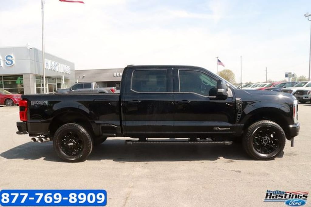 Black Metallic 2025 Ford F-250SD Lariat 4WD 10-Speed Automatic Power Stroke 6.7L V8 DI 32V OHV Turbodiesel F-250 SuperDuty Lariat, 4D Crew Cab, Power Stroke 6.7L V8 DI 32V OHV Turbodiesel, 10-Speed Automatic, 4WD, Black Metallic, Black Onyx Premium Synthetic, 3.73 Axle Ratio, 4-Way Adjustable Headrests, 4-Wheel Disc Brakes, 5th Wheel/Gooseneck Hitch Prep Package, 6" Ebony Black Angular Running Boards, 8 Speakers, ABS brakes, Adaptive Cruise Control with Stop-and-Go, Adjustable pedals, Air Conditioning, All-Weather Floor Mats, Alloy wheels, AM/FM radio: SiriusXM with 360L, Auto High-beam Headlights, Auto-dimming Rear-View mirror, Automatic High Beam, Automatic temperature control, Black Appearance Package, Black Painted Front Grille Surround, BLIS with Cross-Traffic Alert, Body Color Front and Rear Bumpers, Brake assist, Bumpers: chrome, Compass, Delay-off headlights, Driver door bin, Driver vanity mirror, Dual AGM 68 AH Battery, Dual front impact airbags, Dual front side impact airbags, Ebony Black Painted Mirror Caps, Electronic Stability Control, Electronic-Locking with 3.31 Axle Ratio, Emergency communication system: SYNC 4 911 Assist, Engine Block Heater, Flow-Through Console, Front ActiveX Trimmed 40/Console/40 Seats, Front and Rear Parking Sensors, Front anti-roll bar, Front Bucket Seats, Front Center Armrest, Front dual zone A/C, Front fog lights, Front License Plate Bracket, Front reading lights, Fully automatic headlights, FX4 Off-Road Package, Garage door transmitter, GVWR: F-250 >10K Package, Head-Up Display, Heated door mirrors, Heated front seats, Heated rear seats, Heated steering wheel, Hill Descent Control, Illuminated entry, Internet access capable: FordPass Connect 5G, Lane-Keeping System, Lariat Ultimate Package, Low tire pressure warning, Memory seat, Navigation System, Off-Road Specifically Tuned Shock Absorbers, Order Code 608A, Outside temperature display, Overhead airbag, Overhead console, Panic alarm, Passenger door bin, Passenger vanity mirror, Pedal memory, Post-Collision Braking, Power door mirrors, Power driver seat, Power passenger seat, Power steering, Power windows, Power-Deployable Running Boards, Power-Sliding Rear-Window with Defrost, Pre-Collision Assist, Privacy Glass, Pro Power Onboard - 2kW, Pro Trailer Backup Assist, Pro Trailer Hitch Assist, Radio: B&O Sound System by Bang and Olufsen, Radio: B&O Unleashed Sound System by Bang & Olufsen, Rain sensing wipers, Rear Parking Sensors, Rear reading lights, Rear seat center armrest, Rear step bumper, Rear window defroster, Remote keyless entry, Security system, SiriusXM Radio with 360L, Speed control, Split folding rear seat, Steering wheel mounted audio controls, SYNC 4 with Enhanced Voice Recognition, Tachometer, Tailgate Step and Handle, Telescoping steering wheel, Tilt steering wheel, Traction control, Trip computer, Turn signal indicator mirrors, Twin Panel Power Moonroof, Unique FX4 Off-Road Box Decal, Upfitter Switches (6), Variably intermittent wipers, Ventilated front seats, Wheels: 18" Bright Machined and Carbonized Gray Aluminum, F-250 SuperDuty Lariat, 4D Crew Cab, Power Stroke 6.7L V8 DI 32V OHV Turbodiesel, 10-Speed Automatic, 4WD, Black Metallic, Black Onyx Premium Synthetic.