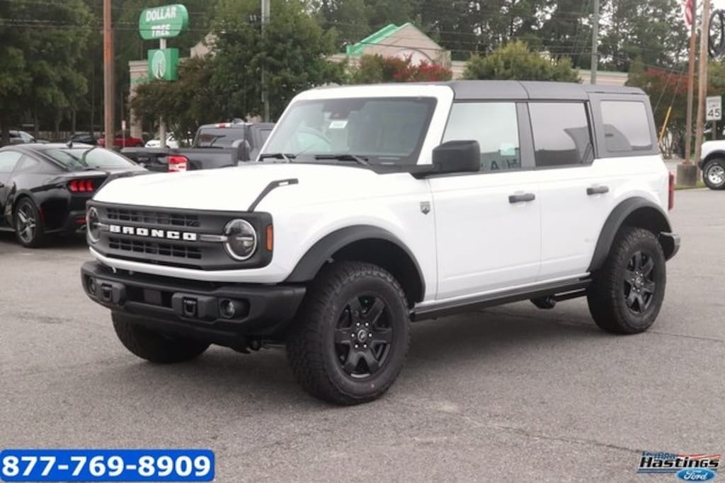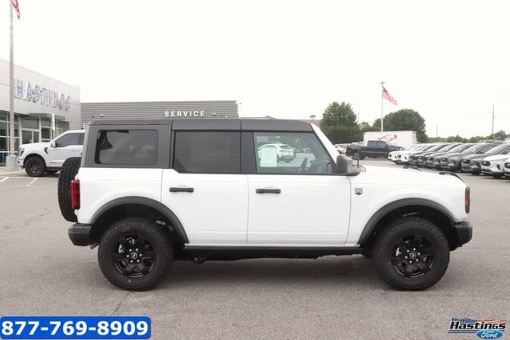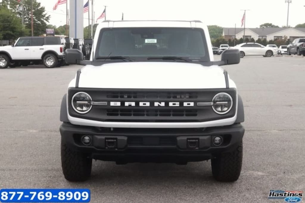 Oxford White 2025 Ford Bronco Big Bend 4WD 10-Speed Automatic 2.3L EcoBoost I-4 2-Door Intelligent Access w/Lock/Unlock, 4-Wheel Disc Brakes, 7 Speakers, ABS brakes, Air Conditioning, Alloy wheels, AM/FM radio: SiriusXM with 360L, AM/FM Stereo, Ambient Footwell Lighting, Auto High-Beam Headlamps, Auto High-beam Headlights, Auxiliary Switches, Black Diamond Package, BLIS Blind Spot Information System, Brake assist, Carbonized Gray Molded-In-Color Hard Top, Cloth Bucket Seats, Compass, Connected Navigation, Delay-off headlights, Dr & Pass Illuminated Sliding Visor Vanity Mirrors, Driver door bin, Driver vanity mirror, Dual front impact airbags, Dual front side impact airbags, Dual Smart Charging USB Ports, Dual-Zone Electronic Automatic Temperature Control, Electronic Stability Control, Emergency communication system: 911 Assist, Equipment Group 222A Mid Package, Exterior Parking Camera Rear, Front anti-roll bar, Front Bucket Seats, Front Center Armrest, Front reading lights, Front Row Heated Seats, Front wheel independent suspension, Fully automatic headlights, Heated door mirrors, Illuminated entry, Integrated roll-over protection, Lane-Keeping System, Leather Shift Knob, LED Fog Lamps, Low tire pressure warning, Occupant sensing airbag, Outside temperature display, Overhead airbag, Overhead console, Panic alarm, Passenger door bin, Passenger vanity mirror, Powder Coated Steel Front & Rear Bumpers, Power door mirrors, Power Outlet - Back Side of Center Floor Console, Power steering, Power windows, Pre-Collision Assist w/Automatic Emergency Braking, Radio data system, Rear Parking Sensors, Rear-View Camera, Rear-Window Defroster & Washer, Remote keyless entry, Rock Rails, Security system, SiriusXM w/360L, Speed control, Split folding rear seat, Steering wheel mounted audio controls, SYNC 4, Tachometer, Telescoping steering wheel, Tilt steering wheel, Traction control, Trip computer, Variably intermittent wipers, Washout Capable Rubberized Flooring, Wheels: 17" Black High Gloss Painted Aluminum, Wheels: 17" Carbonized Gray-Painted Aluminum. Price includes: $1500 - Retail Bonus Cash. Exp. 01/05/2026