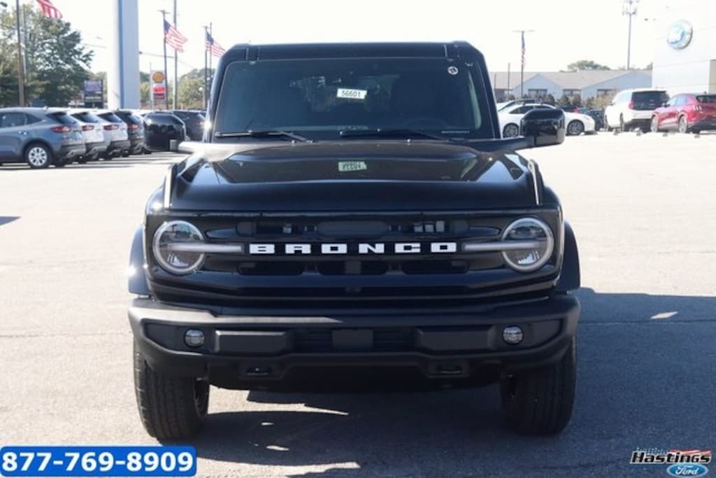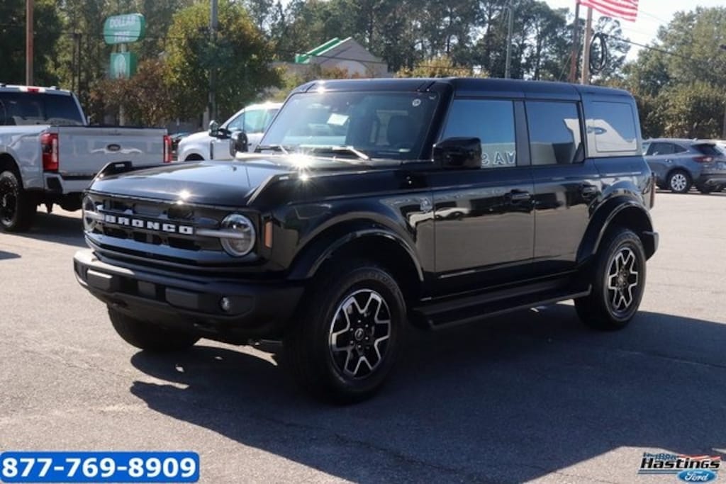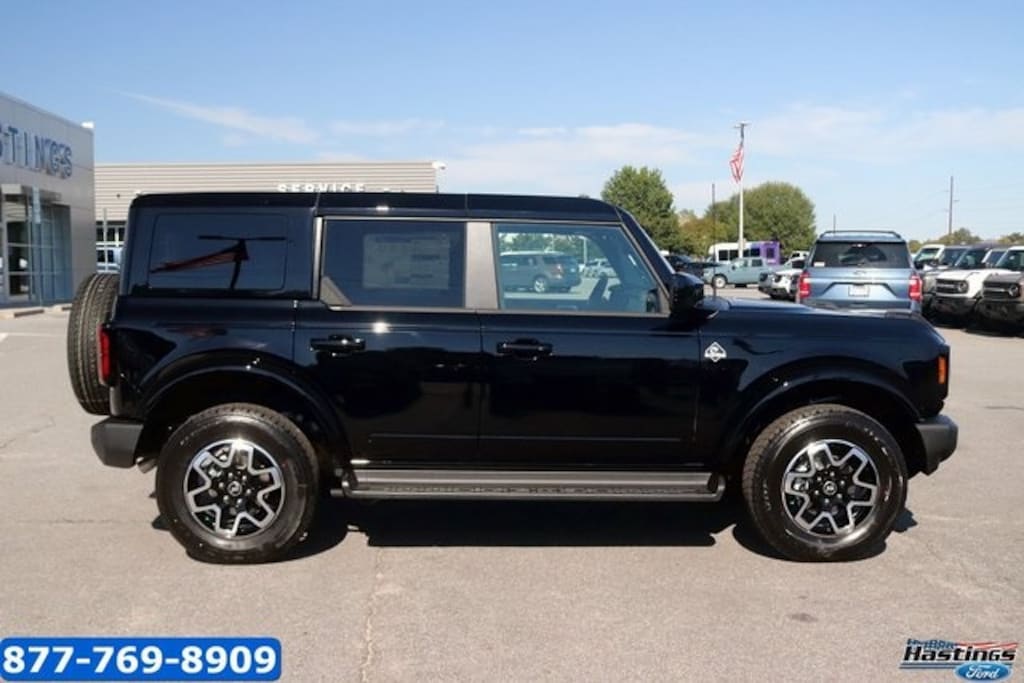 Shadow Black 2025 Ford Bronco Outer Banks 4WD 10-Speed Automatic 2.3L EcoBoost I-4 18" Bright Machined Aluminum Wheels, 3.73 Axle Ratio, 4-Wheel Disc Brakes, 7 Speakers, ABS brakes, Air Conditioning, Alloy wheels, AM/FM radio: SiriusXM with 360L, AM/FM Stereo, Auto High-beam Headlights, Auto-dimming Rear-View mirror, Automatic temperature control, Brake assist, Compass, Connected Navigation, Delay-off headlights, Driver door bin, Driver vanity mirror, Dual front impact airbags, Dual front side impact airbags, Electronic Stability Control, Emergency communication system: 911 Assist, Equipment Group 312A Mid Package, Exterior Parking Camera Rear, Front anti-roll bar, Front Bucket Seats, Front Center Armrest, Front dual zone A/C, Front fog lights, Front reading lights, Front wheel independent suspension, Fully automatic headlights, Hard Top Sound Deadening Headliner, Heated door mirrors, Heated front seats, Heated Leather-Trimmed/Vinyl Bucket Seats, Heated steering wheel, Illuminated entry, Integrated roll-over protection, Leather Shift Knob, Low tire pressure warning, Navigation system: Connected Navigation, Occupant sensing airbag, Outside temperature display, Overhead airbag, Overhead console, Panic alarm, Passenger door bin, Passenger vanity mirror, Power door mirrors, Power driver seat, Power passenger seat, Power steering, Power windows, Radio data system, Rear seat center armrest, Rear-Window Defroster & Washer, Remote keyless entry, Security system, Shadow Black-Painted Hard Top, SiriusXM w/360L, Speed control, Split folding rear seat, Steering wheel mounted audio controls, SYNC 4, Tachometer, Telescoping steering wheel, Tilt steering wheel, Traction control, Trip computer, Variably intermittent wipers, Voltmeter. Price includes: $2000 - Retail Bonus Cash. Exp. 01/05/2026