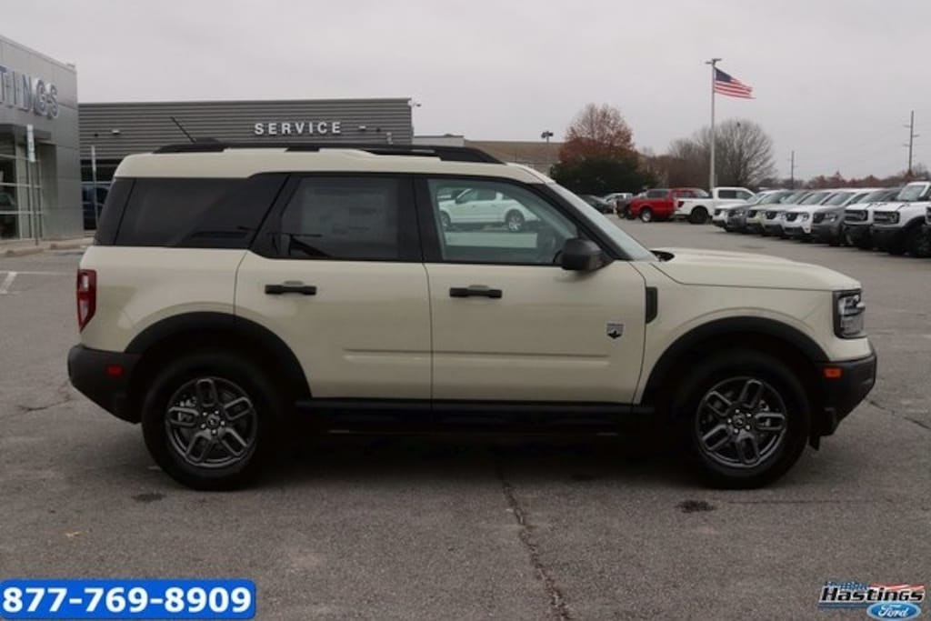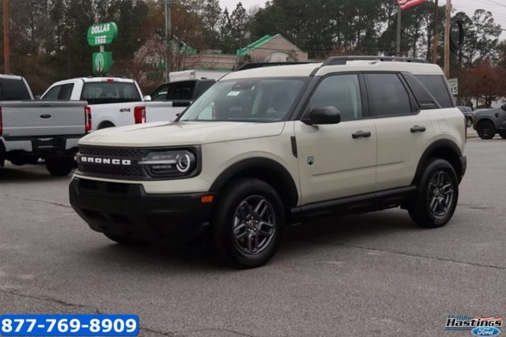 Desert Sand 2025 Ford Bronco Sport Big Bend 4WD 8-Speed Automatic 1.5L EcoBoost 4-Wheel Disc Brakes, 6 Speakers, ABS brakes, Air Conditioning, Alloy wheels, AM/FM radio: SiriusXM, AM/FM Stereo, Auto High-beam Headlights, Automatic temperature control, Brake assist, Cloth w/Easy-to-Clean Front Bucket Seats, Compass, Delay-off headlights, Driver door bin, Driver vanity mirror, Dual front impact airbags, Dual front side impact airbags, Electronic Stability Control, Emergency communication system: SYNC 4 911 Assist, Equipment Group 200A, Four wheel independent suspension, Front anti-roll bar, Front Bucket Seats, Front Center Armrest, Front reading lights, Fully automatic headlights, Heated door mirrors, Illuminated entry, Knee airbag, Low tire pressure warning, Occupant sensing airbag, Outside temperature display, Overhead airbag, Overhead console, Panic alarm, Passenger door bin, Passenger vanity mirror, Power door mirrors, Power steering, Power windows, Radio data system, Rear anti-roll bar, Rear Parking Sensors, Rear reading lights, Rear seat center armrest, Rear window defroster, Rear window wiper, Remote keyless entry, Security system, SiriusXM, Speed control, Speed-sensing steering, Speed-Sensitive Wipers, Split folding rear seat, Steering wheel mounted audio controls, SYNC 4 w/Enhanced Voice Recognition, Tachometer, Telescoping steering wheel, Tilt steering wheel, Traction control, Trip computer, Variably intermittent wipers, Wheels: 17" Carbonized Gray-Painted Aluminum.