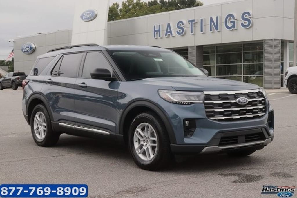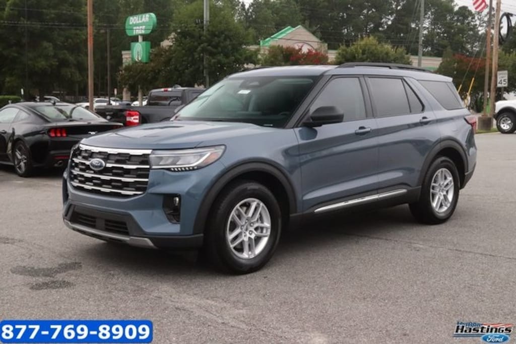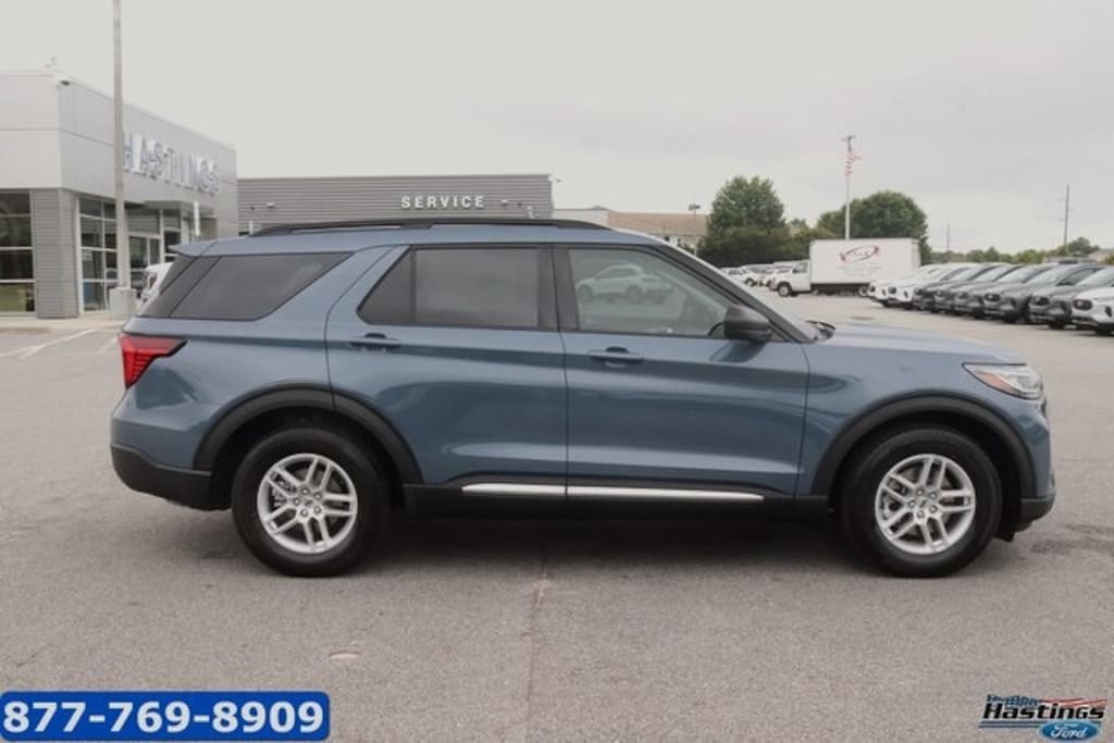 2025 Ford Explorer Active RWD 10-Speed Automatic 2.3L EcoBoost I-4 3.58 Non-Limited Slip Rear Axle, 3rd row seats: bench, 4-Wheel Disc Brakes, 6 Speakers, ABS brakes, Air Conditioning, Alloy wheels, AM/FM radio: SiriusXM with 360L, AM/FM Stereo, Apple CarPlay/Android Auto, Auto High-beam Headlights, Automatic temperature control, Brake assist, Bumpers: body-color, Compass, Delay-off headlights, Driver door bin, Driver vanity mirror, Dual front impact airbags, Dual front side impact airbags, Electronic Stability Control, Emergency communication system: 911 Assist, Exterior Parking Camera Rear, Four wheel independent suspension, Front anti-roll bar, Front Bucket Seats, Front Center Armrest, Front dual zone A/C, Front reading lights, Fully automatic headlights, Heated door mirrors, Heated front seats, Illuminated entry, Knee airbag, Leather steering wheel, Low tire pressure warning, Navigation System, Occupant sensing airbag, Outside temperature display, Overhead airbag, Overhead console, Panic alarm, Passenger door bin, Passenger vanity mirror, Power door mirrors, Power driver seat, Power Liftgate, Power passenger seat, Power steering, Power windows, Rear air conditioning, Rear anti-roll bar, Rear reading lights, Rear window defroster, Rear window wiper, Remote keyless entry, Security system, Speed control, Speed-sensing steering, Speed-Sensitive Wipers, Split folding rear seat, Spoiler, Steering wheel mounted audio controls, Tachometer, Telescoping steering wheel, Tilt steering wheel, Traction control, Trip computer, Unique Heated Cloth Captain's Chairs, Variably intermittent wipers, Wheels: 18" Sparkle Silver-Painted Aluminum.