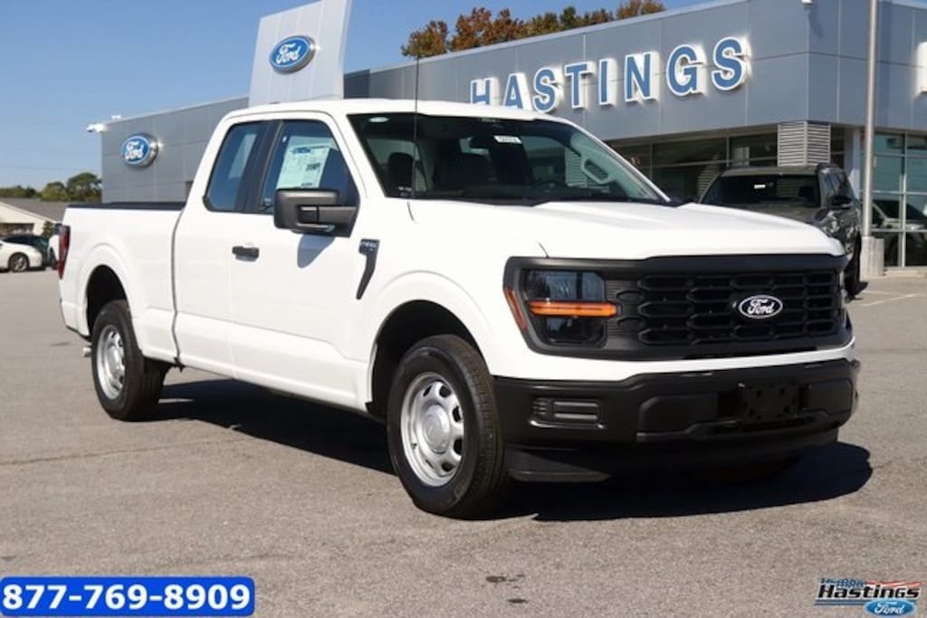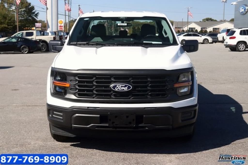 Oxford White 2025 Ford F-150 XL RWD 10-Speed Automatic 2.7L V6 EcoBoost 3.55 Axle Ratio, 4-Wheel Disc Brakes, 6 Speakers, ABS brakes, Air Conditioning, AM/FM radio: SiriusXM with 360L, Auto High-beam Headlights, Brake assist, Cloth 40/20/40 Front Seat, Compass, Delay-off headlights, Driver door bin, Dual front impact airbags, Dual front side impact airbags, Electronic Stability Control, Emergency communication system: SYNC 4 911 Assist, Equipment Group 101A Standard, Front anti-roll bar, Front Center Armrest, Front License Plate Bracket, Front reading lights, Front wheel independent suspension, Fully automatic headlights, GVWR: 6,365 lbs Payload Package, Heated door mirrors, Illuminated entry, Low tire pressure warning, Occupant sensing airbag, Outside temperature display, Overhead airbag, Overhead console, Panic alarm, Passenger door bin, Passenger vanity mirror, Power door mirrors, Power steering, Power windows, Radio data system, Radio: AM/FM Stereo w/SiriusXM 360L, Rear Parking Sensors, Rear step bumper, Remote keyless entry, Security system, Speed control, Split folding rear seat, Steering wheel mounted audio controls, SYNC 4 w/Enhanced Voice Recognition, Tachometer, Telescoping steering wheel, Tilt steering wheel, Traction control, Trip computer, Variably intermittent wipers, Voltmeter, Wheels: 17" Silver Steel.