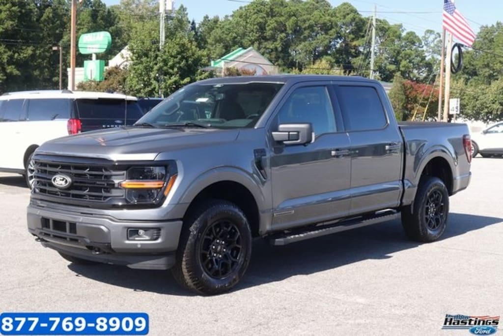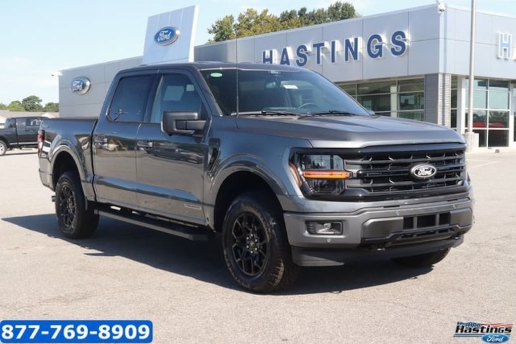 Carbonized Gray Metallic 2025 Ford F-150 XLT 4WD 10-Speed Automatic 3.5L PowerBoost Full-Hybrid V6 3.5L PowerBoost Full-Hybrid V6, 4WD, 3.31 Axle Ratio, 4-Wheel Disc Brakes, 6 Speakers, ABS brakes, Air Conditioning, Alloy wheels, AM/FM radio: SiriusXM with 360L, Auto High-beam Headlights, Brake assist, Bumpers: chrome, Chrome wheels, Cloth 40/20/40 Front Seat, Compass, Console Worksurface, Delay-off headlights, Driver door bin, Driver vanity mirror, Dual front impact airbags, Dual front side impact airbags, Electronic Stability Control, Emergency communication system: SYNC 4 911 Assist, Equipment Group 302A Mid, Front anti-roll bar, Front Center Armrest, Front fog lights, Front reading lights, Front wheel independent suspension, Fully automatic headlights, FX4 Off-Road Package, Heated door mirrors, Illuminated entry, Low tire pressure warning, Mobile Office Package, Occupant sensing airbag, Outside temperature display, Overhead airbag, Overhead console, Panic alarm, Partitioned Lockable Rear Storage, Passenger door bin, Passenger vanity mirror, Power door mirrors, Power steering, Power windows, Radio data system, Radio: AM/FM Stereo w/SiriusXM 360L, Rear Parking Sensors, Rear reading lights, Rear step bumper, Rear window defroster, Remote keyless entry, Security system, Speed control, Split folding rear seat, Steering wheel mounted audio controls, SYNC 4 w/Enhanced Voice Recognition, Tachometer, Telescoping steering wheel, Tilt steering wheel, Tow/Haul Package, Traction control, Trip computer, Variably intermittent wipers, Voltmeter, Wheels: 18" Chrome-Like PVD, 3.5L PowerBoost Full-Hybrid V6, 4WD. Price includes: $2500 - Retail Bonus Cash. Exp. 01/05/2026 $500 - Bonus Customer Cash. Exp. 01/05/2026