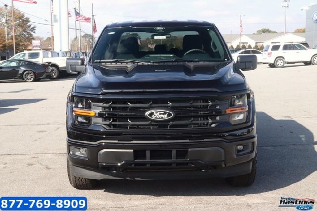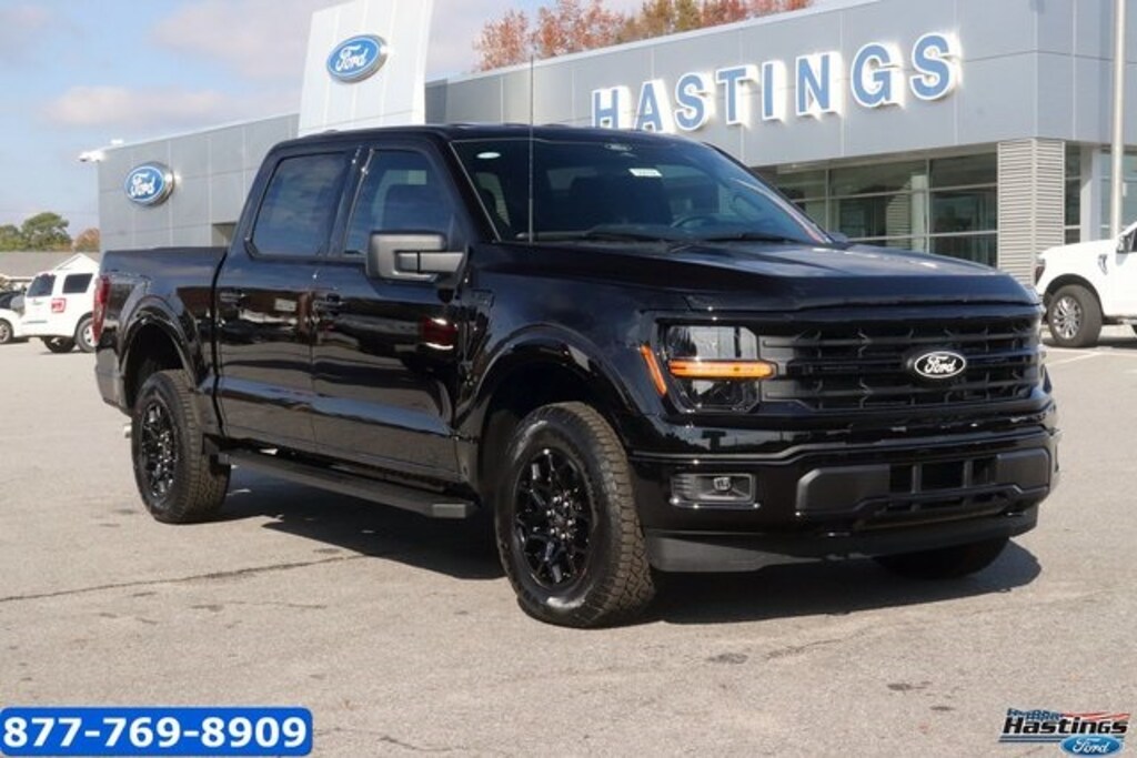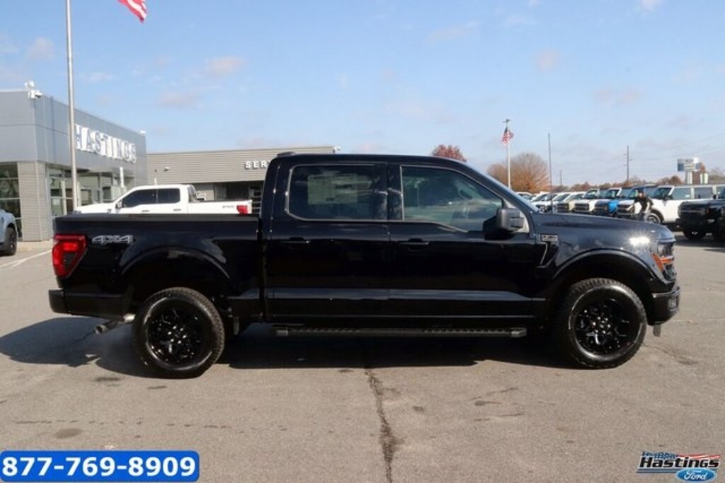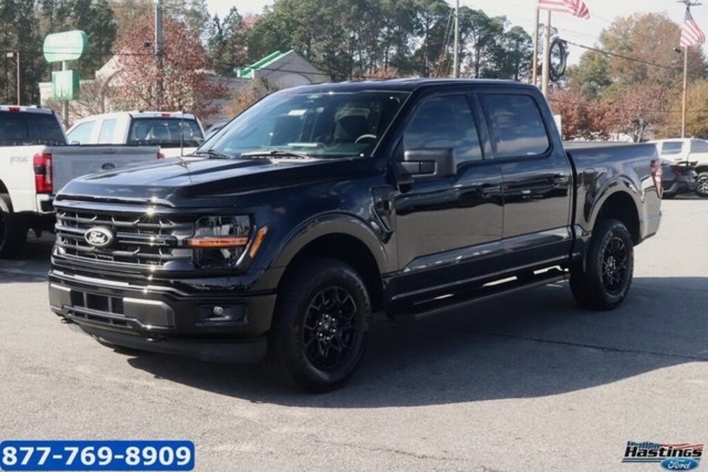 Black Metallic 2025 Ford F-150 XLT 4WD 10-Speed Automatic 3.5L V6 EcoBoost 4WD, 4-Wheel Disc Brakes, 6 Speakers, ABS brakes, Air Conditioning, Alloy wheels, AM/FM radio: SiriusXM with 360L, Auto High-beam Headlights, Brake assist, Bumpers: chrome, Chrome wheels, Cloth 40/20/40 Front Seat, Compass, Delay-off headlights, Driver door bin, Driver vanity mirror, Dual front impact airbags, Dual front side impact airbags, Electronic Stability Control, Emergency communication system: SYNC 4 911 Assist, Equipment Group 301A Standard, Front anti-roll bar, Front Center Armrest, Front fog lights, Front reading lights, Front wheel independent suspension, Fully automatic headlights, Heated door mirrors, Illuminated entry, Low tire pressure warning, Occupant sensing airbag, Outside temperature display, Overhead airbag, Overhead console, Panic alarm, Passenger door bin, Passenger vanity mirror, Power door mirrors, Power steering, Power windows, Radio data system, Radio: AM/FM Stereo w/SiriusXM 360L, Rear Parking Sensors, Rear reading lights, Rear step bumper, Rear window defroster, Remote keyless entry, Security system, Speed control, Split folding rear seat, Steering wheel mounted audio controls, SYNC 4 w/Enhanced Voice Recognition, Tachometer, Telescoping steering wheel, Tilt steering wheel, Tough Bed Spray-In Bedliner, Tow/Haul Package, Traction control, Tray Style Floor Liner w/Carpet Mats, Trip computer, Variably intermittent wipers, Voltmeter, Wheels: 18" Chrome-Like PVD, 4WD.