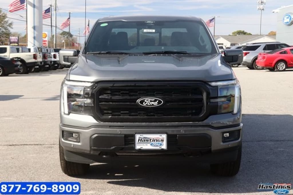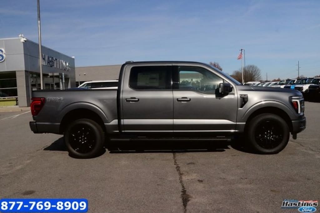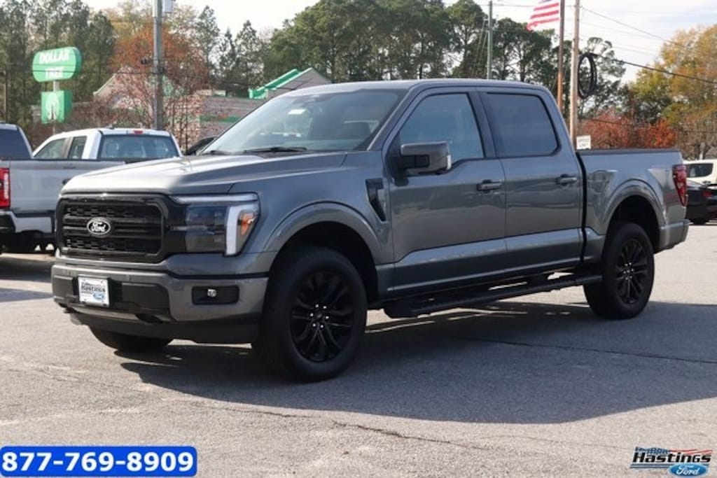 Carbonized Gray Metallic 2025 Ford F-150 Lariat 4WD 10-Speed Automatic 5.0L V8 4WD, 2nd Row Heated Seats, 4 Pickup Box Tie-Down Plates, 4-Wheel Disc Brakes, 4x4 FX4 Off-Road Bodyside Decal, 6" Extended Running Boards, 8 Speakers, ABS brakes, ActiveX Trimmed Bucket Seats, Adjustable pedals, Air Conditioning, Alloy wheels, AM/FM radio: SiriusXM with 360L, Ambient Lighting - Ice Blue Color Only, Auto High-beam Headlights, Auto-dimming door mirrors, Auto-dimming Rear-View mirror, Automatic temperature control, Bed Utility Package, Brake assist, Bumpers: chrome, Chrome wheels, Compass, Console Worksurface, Delay-off headlights, Driver door bin, Driver vanity mirror, Dual front impact airbags, Dual front side impact airbags, Electronic Stability Control, Emergency communication system: SYNC 4 911 Assist, Equipment Group 502A High, Front anti-roll bar, Front Bucket Seats, Front Center Armrest, Front dual zone A/C, Front fog lights, Front License Plate Bracket, Front reading lights, Front wheel independent suspension, Fully automatic headlights, FX4 Off-Road Package, Garage door transmitter, Heads-Up Display, Heated door mirrors, Heated front seats, Heated steering wheel, Hill Descent Control, Illuminated Driver & Passenger Visors, Illuminated entry, Internet access capable: FordPass Connect 5G, LED Box Lighting, Low tire pressure warning, Memory seat, Mobile Office Package, Monotube Rear Shocks, Navigation system: Connected Navigation, Occupant sensing airbag, Off-Road Tuned Front Shock Absorbers, Outside temperature display, Overhead airbag, Overhead console, Panic alarm, Partitioned Lockable Rear Storage, Passenger door bin, Passenger vanity mirror, Pedal memory, Power door mirrors, Power driver seat, Power passenger seat, Power steering, Power Tailgate, Power windows, Power-Sliding Rear Window, Pro Access Tailgate, Radio data system, Radio: B&O Sound System by Bang & Olufsen, Radio: B&O Unleashed Sound System by Bang & Olufsen, Rain sensing wipers, Rear reading lights, Rear seat center armrest, Rear step bumper, Rear window defroster, Remote keyless entry, Rock Crawl Mode, Security system, Speed control, Split folding rear seat, Steering wheel mounted audio controls, SYNC 4 w/Enhanced Voice Recognition, Tachometer, Telescoping steering wheel, Tilt steering wheel, Tow/Haul Package, Traction control, Tray Style Floor Liner w/o Carpet Mats, Trip computer, Turn signal indicator mirrors, Twin Panel Moonroof, Variably intermittent wipers, Ventilated front seats, Voltmeter, Wheels: 18" Chrome-Like PVD, Wheels: 20" Chrome-Like PVD, Wireless Charging, 4WD. Price includes: $2000 - Retail Customer Cash. Exp. 03/31/2026 $500 - Retail Bonus Cash. Exp. 03/31/2026