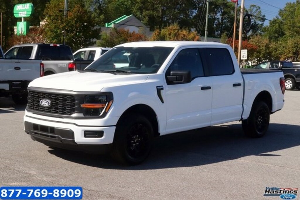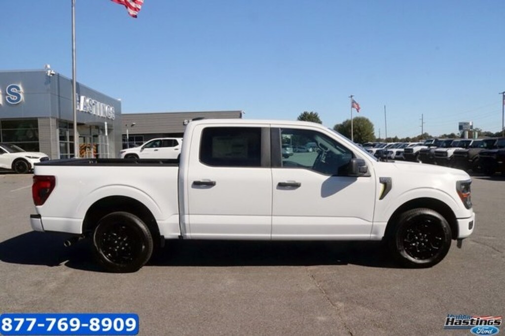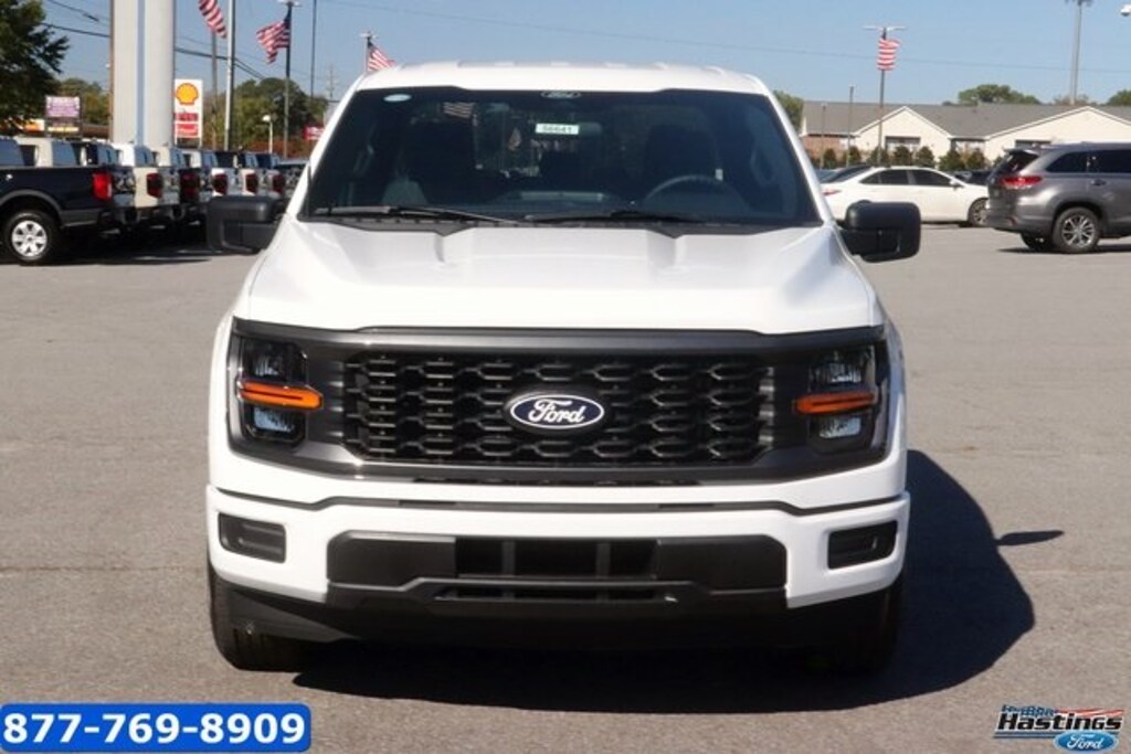 Oxford White 2025 Ford F-150 STX RWD 10-Speed Automatic 2.7L V6 EcoBoost 3.55 Axle Ratio, 4-Wheel Disc Brakes, 6 Speakers, ABS brakes, Air Conditioning, Alloy wheels, AM/FM radio: SiriusXM with 360L, Auto High-beam Headlights, Brake assist, Bumpers: body-color, Compass, Delay-off headlights, Driver door bin, Dual front impact airbags, Dual front side impact airbags, Electronic Stability Control, Emergency communication system: SYNC 4 911 Assist, Equipment Group 200B Standard, Front anti-roll bar, Front Bucket Seats, Front Center Armrest, Front reading lights, Front wheel independent suspension, Fully automatic headlights, GVWR: 6,426 lbs Payload Package, Heated door mirrors, Illuminated entry, Low tire pressure warning, Occupant sensing airbag, Outside temperature display, Overhead airbag, Overhead console, Panic alarm, Passenger door bin, Passenger vanity mirror, Power door mirrors, Power steering, Power windows, Radio data system, Radio: AM/FM Stereo w/SiriusXM 360L, Rear Parking Sensors, Rear step bumper, Rear window defroster, Remote keyless entry, Security system, Speed control, Split folding rear seat, Steering wheel mounted audio controls, SYNC 4 w/Enhanced Voice Recognition, Tachometer, Telescoping steering wheel, Tilt steering wheel, Tough Bed Spray-In Bedliner, Traction control, Trip computer, Variably intermittent wipers, Voltmeter, Wheels: 18" Gloss Black.