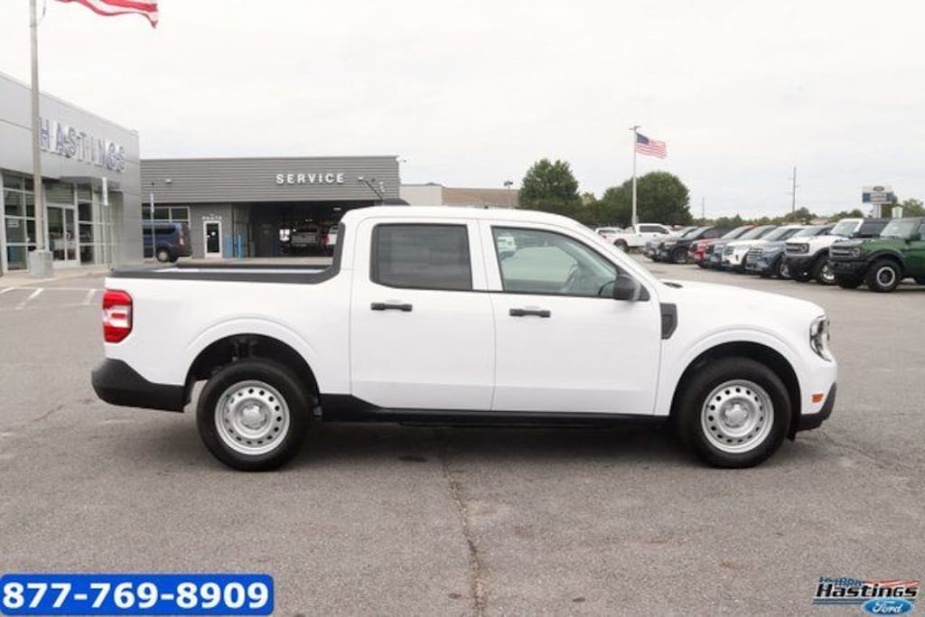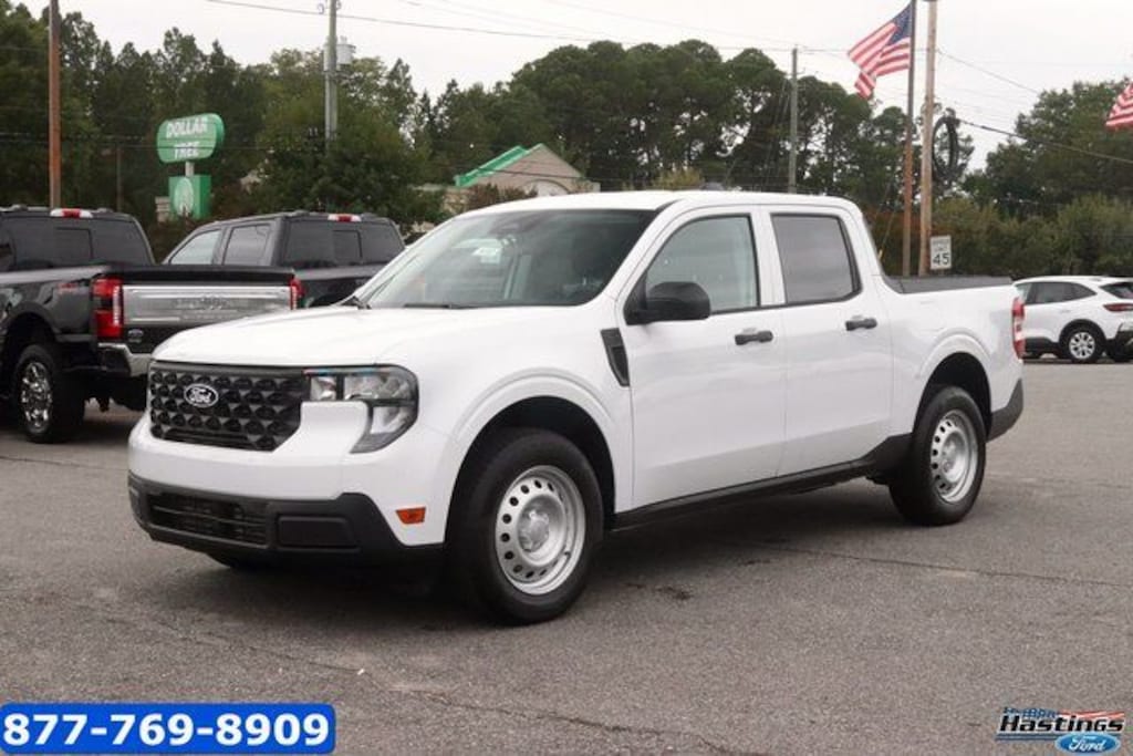 Oxford White 2025 Ford Maverick XL FWD CVT 2.5L I-4 Hybrid 2.5L I-4 Hybrid, 2.91 Axle Ratio, 2K Trailer Hitch Receiver w/4-Pin Connector, 4-Wheel Disc Brakes, 6 Speakers, ABS brakes, Air Conditioning, AM/FM radio: SiriusXM with 360L, Apple CarPlay/Android Auto, Auto High Beams, Auto High-beam Headlights, Automatic temperature control, BLIS w/Cross-Traffic Alert, Brake assist, Bumpers: body-color, Compass, Cross Traffic Brake Assist, Delay-off headlights, Driver door bin, Driver vanity mirror, Dual front impact airbags, Dual front side impact airbags, Electronic Stability Control, Emergency communication system: SYNC 4 911 Assist, Equipment Group 100A, Evasive Steering Assist, Exterior Parking Camera Rear, Ford Co-Pilot360 1.0, Front anti-roll bar, Front Bucket Seats, Front Center Armrest, Front Cloth Bucket Seats, Front License Plate Bracket, Front reading lights, Front wheel independent suspension, Fully automatic headlights, Illuminated entry, Internet access capable: FordPass Connect 5G, Intersection Assist, Knee airbag, Lane-Keeping System, Low tire pressure warning, Occupant sensing airbag, Outside temperature display, Overhead airbag, Overhead console, Panic alarm, Passenger door bin, Passenger vanity mirror, Power Glass Manual-Folding Mirrors, Power steering, Power windows, Pre-Collision Assist w/Automatic Emergency Braking, Radio data system, Radio: AM/FM Stereo w/6 Speakers, Rear anti-roll bar, Rear Parking Sensors, Rear step bumper, Rear-View Camera, Remote keyless entry, SiriusXM w/360L, Speed control, Speed-sensing steering, Steering wheel mounted audio controls, SYNC 4 w/Enhanced Voice Recognition, Telescoping steering wheel, Tilt steering wheel, Traction control, Trip computer, Wheels: 17" Steel w/Sparkle Silver Painted Cover, 2.5L I-4 Hybrid.
