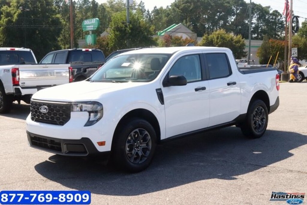Oxford White 2025 Ford Maverick XLT FWD CVT 2.5L I-4 Hybrid 2.5L I-4 Hybrid, 2.91 Axle Ratio, 4-Wheel Disc Brakes, 6 Speakers, ABS brakes, Air Conditioning, Alloy wheels, AM/FM radio: SiriusXM with 360L, Apple CarPlay/Android Auto, Auto High Beams, Auto High-beam Headlights, Automatic temperature control, BLIS w/Cross-Traffic Alert, Brake assist, Bumpers: body-color, Compass, Cross Traffic Brake Assist, Delay-off headlights, Driver door bin, Driver vanity mirror, Dual front impact airbags, Dual front side impact airbags, Electronic Stability Control, Emergency communication system: SYNC 4 911 Assist, Equipment Group 300A, Evasive Steering Assist, Exterior Parking Camera Rear, Ford Co-Pilot360 1.0, Front anti-roll bar, Front Bucket Seats, Front Center Armrest, Front reading lights, Front wheel independent suspension, Fully automatic headlights, Illuminated entry, Intersection Assist, Knee airbag, Lane-Keeping System, Low tire pressure warning, Occupant sensing airbag, Outside temperature display, Overhead airbag, Overhead console, Panic alarm, Passenger door bin, Passenger vanity mirror, Power door mirrors, Power Glass Manual-Folding Mirrors, Power steering, Power windows, Pre-Collision Assist w/Automatic Emergency Braking, Radio data system, Radio: AM/FM Stereo w/6 Speakers, Rear anti-roll bar, Rear Parking Sensors, Rear seat center armrest, Rear step bumper, Rear-View Camera, Remote keyless entry, Security system, SiriusXM w/360L, Speed control, Speed-sensing steering, Steering wheel mounted audio controls, SYNC 4 w/Enhanced Voice Recognition, Telescoping steering wheel, Tilt steering wheel, Traction control, Trip computer, Unique Cloth Front Bucket Seats, Wheels: 17" Carbonized Gray Painted Aluminum, 2.5L I-4 Hybrid.