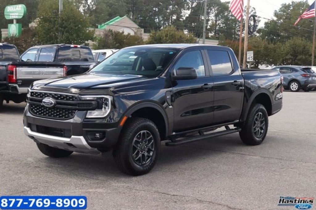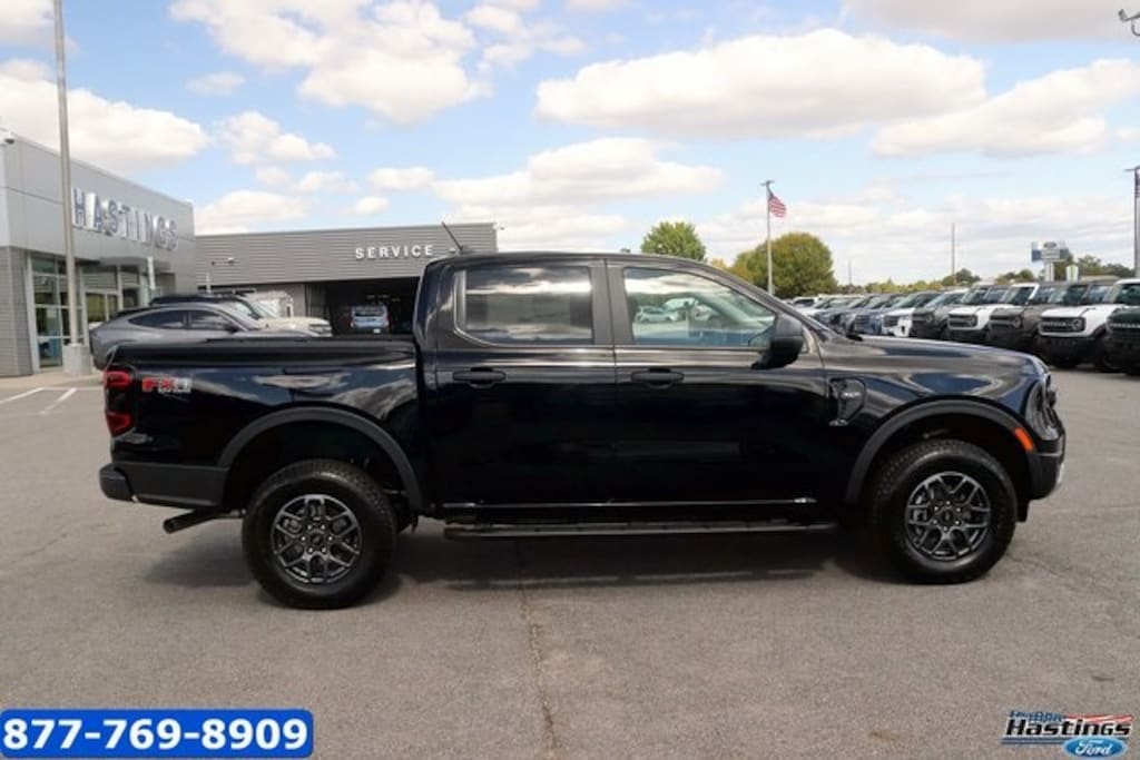 Shadow Black 2025 Ford Ranger XLT 4WD 10-Speed Automatic EcoBoost 2.3L I4 GTDi DOHC Turbocharged VCT 4WD, 4-Wheel Disc Brakes, 6 Speakers, ABS brakes, Air Conditioning, Alloy wheels, AM/FM radio: SiriusXM, AM/FM Stereo, Auto High-beam Headlights, Auto-dimming Rear-View mirror, Black Running Boards, Brake assist, Class IV Trailer Hitch Receiver, Cloth Front Bucket Seats, Compass, Delay-off headlights, Driver door bin, Driver vanity mirror, Dual front impact airbags, Dual front side impact airbags, Electronic Stability Control, Emergency communication system: SYNC 4 911 Assist, Equipment Group 301A High, Front anti-roll bar, Front Bucket Seats, Front Center Armrest, Front fog lights, Front License Plate Bracket, Front reading lights, Front wheel independent suspension, Fully automatic headlights, FX4 Off-Road Box Decal, FX4 Off-Road Package, FX4 Selectable Drive Modes, Gray Painted Center Bar & Grille Surround, Gray Painted Front Fascia & Rear Bumper, Illuminated entry, Leather Shift Knob, Low tire pressure warning, Navigation system: Connected Navigation, Occupant sensing airbag, Off-Road Screen in Center Stack, Off-Road Tuned Shocks, Outside temperature display, Overhead airbag, Overhead console, Panic alarm, Passenger door bin, Passenger vanity mirror, Power door mirrors, Power steering, Power windows, Rear reading lights, Rear seat center armrest, Rear step bumper, Rear window defroster, Remote keyless entry, Security system, SiriusXM Satellite Radio, Speed control, Speed-sensing steering, Sport Appearance Package, Sport Box Decal, Steering wheel mounted audio controls, SYNC 4A w/Connected Navigation, Telescoping steering wheel, Tilt steering wheel, Traction control, Trail Control, Trailer Tow Package, Trip computer, Variably intermittent wipers, Voltmeter, Wheels: 17" Gray-Painted Aluminum, 4WD. Price includes: $2000 - Bonus Customer Cash. Exp. 01/05/2026