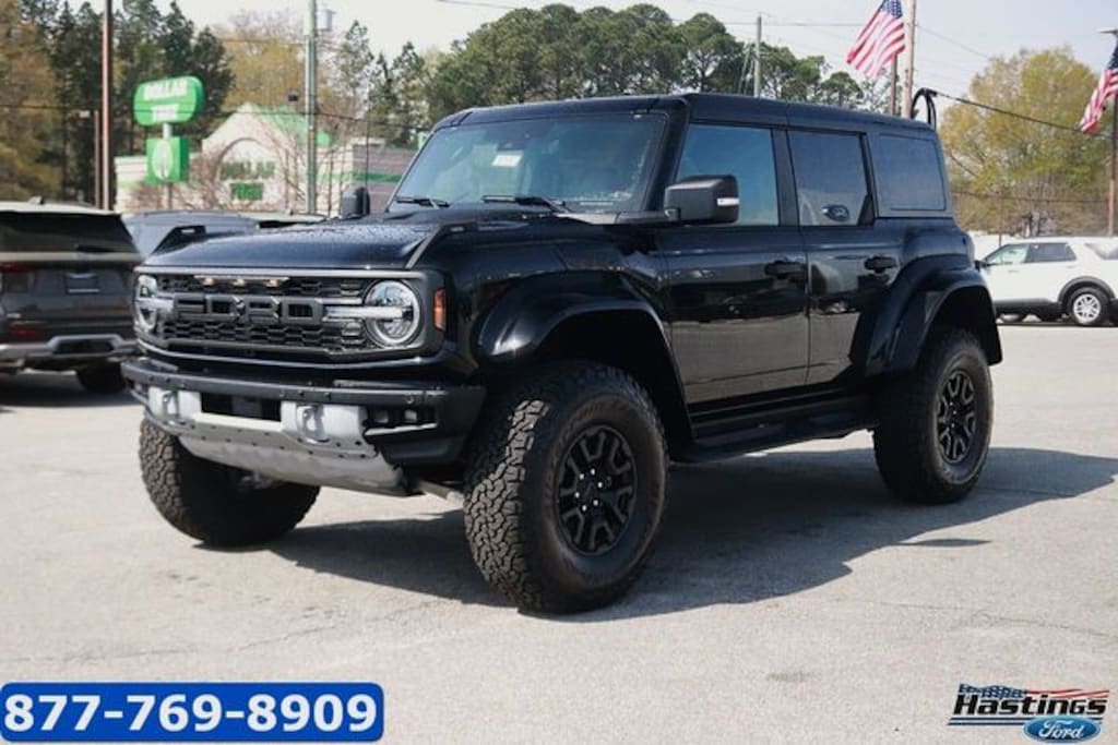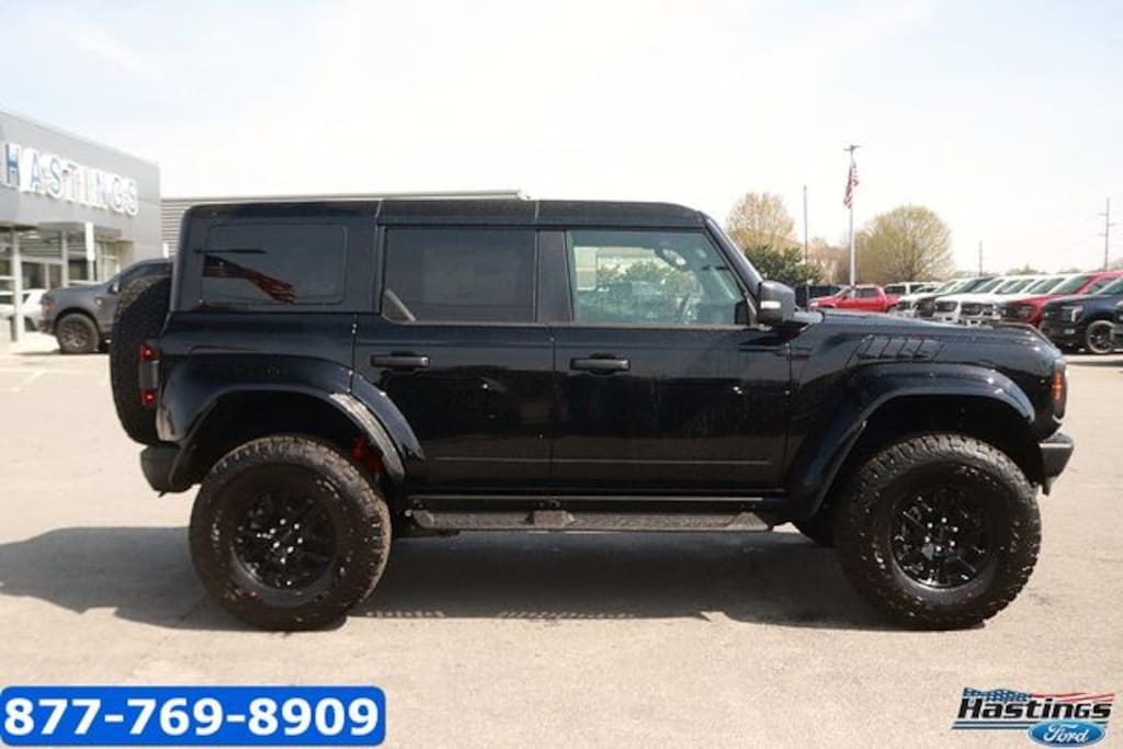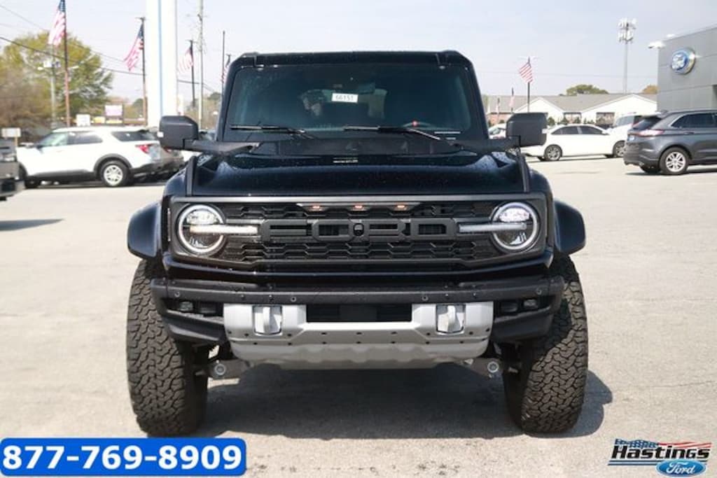 Shadow Black 2026 Ford Bronco Raptor 4WD 10-Speed Automatic 3.0L EcoBoost V6 12 Speakers, 4-Wheel Disc Brakes, ABS brakes, Air Conditioning, Alloy wheels, AM/FM radio: SiriusXM with 360L, Auto High-beam Headlights, Auto-dimming Rear-View mirror, Automatic temperature control, Brake assist, Compass, Connected Navigation, Convertible HardTop, Convertible roof lining, Delay-off headlights, Driver door bin, Driver vanity mirror, Dual front impact airbags, Dual front side impact airbags, Electronic Stability Control, Emergency communication system: 911 Assist, Equipment Group 374A Lux Package, Exterior Parking Camera Rear, Ford Connectivity Package (1-Year Included), Front anti-roll bar, Front Bucket Seats, Front Center Armrest, Front dual zone A/C, Front fog lights, Front License Plate Bracket, Front reading lights, Front wheel independent suspension, Fully automatic headlights, Glass rear window, Hard Top Sound Deadening Headliner, Heated door mirrors, Heated front seats, Heated steering wheel, Illuminated entry, Integrated roll-over protection, Leather Shift Knob, Low tire pressure warning, Marine Grade Vinyl Bucket Seats, Navigation system: Connected Navigation, Occupant sensing airbag, Outside temperature display, Overhead airbag, Overhead console, Panic alarm, Passenger door bin, Passenger vanity mirror, Power door mirrors, Power steering, Power windows, Radio data system, Rear anti-roll bar, Rear seat center armrest, Rear window defroster, Rear window wiper, Rear-Window Defroster and Washer, Remote keyless entry, Security system, Shadow Black Painted Hard Top, SiriusXM with 360L, Speed control, Split folding rear seat, Steering wheel mounted audio controls, SYNC 4, Tachometer, Telescoping steering wheel, Tilt steering wheel, Traction control, Trip computer, Turn signal indicator mirrors, Variably intermittent wipers, Voltmeter, Wheels: 17" Black High Gloss-Painted Aluminum.