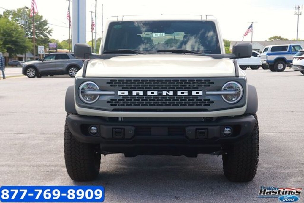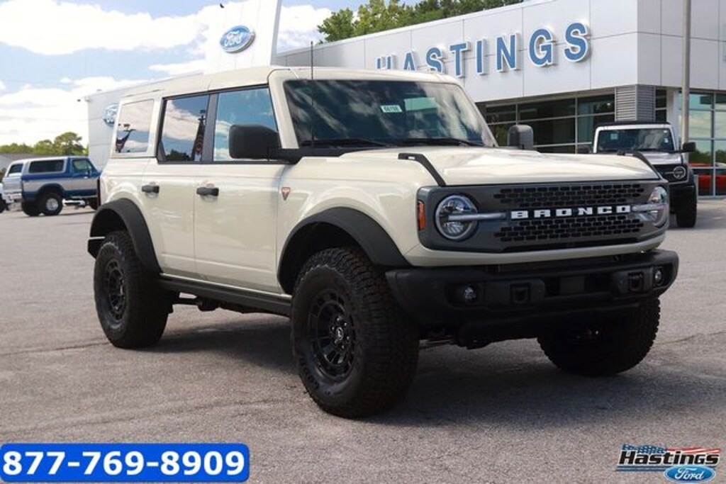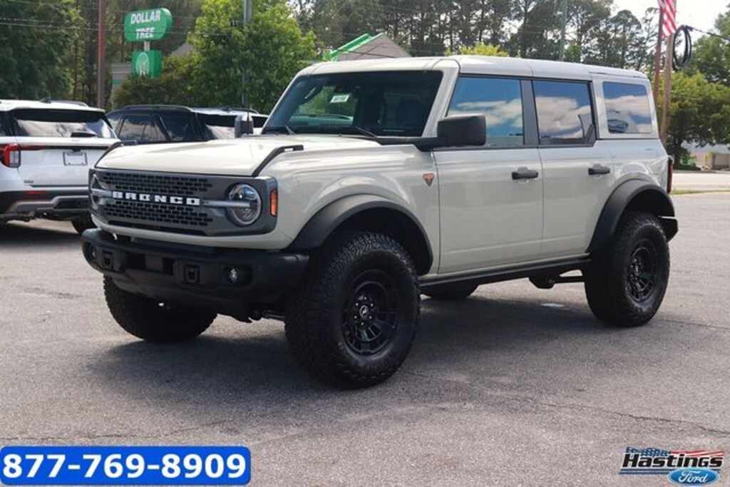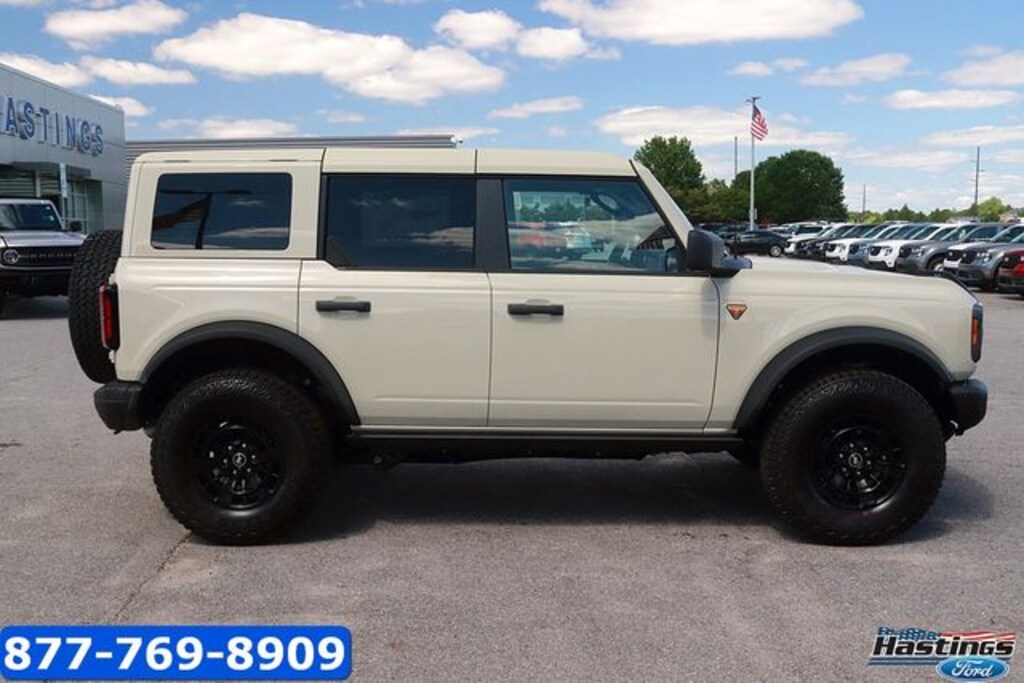 Desert Sand 2026 Ford Bronco Badlands 4WD 7-Speed Manual 2.3L EcoBoost I-4 2-Door Intelligent Access with Lock/Unlock, 360-Degree Camera, 4-Wheel Disc Brakes, 7 Speakers, ABS brakes, Adaptive Cruise Control, Air Conditioning, Alloy wheels, AM/FM radio: SiriusXM with 360L, AM/FM Stereo, Ambient Footwell Lighting, Auto High-Beam Headlamps, Auto High-beam Headlights, Auto-dimming Rear-View mirror, BLIS Blind Spot Information System, Brake assist, Compass, Connected Navigation, Delay-off headlights, Driver and Front Passenger Illuminated Sliding Visor Vanity Mirrors, Driver door bin, Driver vanity mirror, Dual front impact airbags, Dual front side impact airbags, Dual Smart Charging USB Ports, Dual Tops - Soft Top Add-in, Dual-Zone Electronic Automatic Temperature Control, Electronic Stability Control, Emergency communication system: 911 Assist, Equipment Group 334A Lux Package, Evasive Steering Assist, Exterior Parking Camera Rear, Ford Connectivity Package (1-Year Included), Ford Connectivity Package (one-Time Purchase - 7 Years), Front anti-roll bar, Front Bucket Seats, Front Center Armrest, Front fog lights, Front Parking Sensors, Front reading lights, Front Row Heated Seats, Front Stabilizer Disconnect, Front wheel independent suspension, Fully automatic headlights, Hard Top Sound Deadening Headliner, Heated door mirrors, Heated front seats, Heated Steering Wheel, High Clearance Suspension, Illuminated entry, Integrated roll-over protection, Lane-Keeping System, Leather Shift Knob, Low tire pressure warning, Marine Grade Vinyl Heated Bucket Seats, Occupant sensing airbag, Outside temperature display, Overhead airbag, Overhead console, Painted Hard Top, Panic alarm, Passenger door bin, Passenger vanity mirror, Position-Sensitive Bilstein Shock Absorbers, Power door mirrors, Power steering, Power windows, Pre-Collision Assist with Automatic Emergency Braking, Pro Power Onboard - 400W, Radio data system, Rear Parking Sensors, Rear-View Camera, Rear-Window Defroster and Washer, Remote keyless entry, Sasquatch Package, Security system, Sideview Mirrors, SiriusXM with 360L, Speed control, Split folding rear seat, Steering wheel mounted audio controls, SYNC 4, Tachometer, Telescoping steering wheel, Tilt steering wheel, Traction control, Trip computer, Variably intermittent wipers, Voltmeter, Wheels: 17" Carbonized Gray-Painted Aluminum.