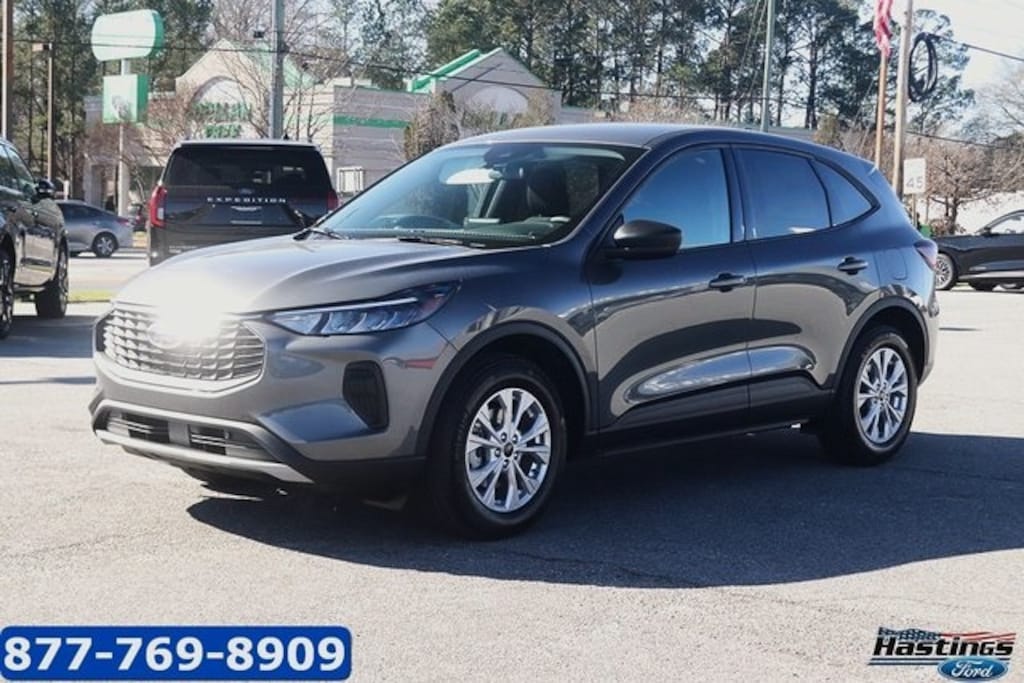 carbonized gray metallic 2026 Ford Escape Active FWD 8-Speed Automatic 1.5L EcoBoost 3.81 Axle Ratio, 4-Way Manual Front Passenger Seat, 4-Wheel Disc Brakes, 6 Speakers, 6-Way Manual Driver Seat, ABS brakes, Air Conditioning, Alloy wheels, AM/FM radio: SiriusXM 360L, Auto High-beam Headlights, Automatic temperature control, Brake assist, Bumpers: body-color, Compass, Delay-off headlights, Driver door bin, Driver vanity mirror, Dual front impact airbags, Dual front side impact airbags, Electronic Stability Control, Emergency communication system: SYNC 4 911 Assist, Equipment Group 200A, Ford App, Four wheel independent suspension, Front anti-roll bar, Front Bucket Seats, Front Center Armrest, Front dual zone A/C, Front reading lights, Fully automatic headlights, Illuminated entry, Knee airbag, Low tire pressure warning, Occupant sensing airbag, Outside temperature display, Overhead airbag, Overhead console, Panic alarm, Passenger door bin, Passenger vanity mirror, Power door mirrors, Power Liftgate, Power steering, Power windows, Radio data system, Radio: AM/FM Stereo with SiriusXM 360L, Rear anti-roll bar, Rear reading lights, Rear seat center armrest, Rear window defroster, Rear window wiper, Remote keyless entry, Speed control, Speed-sensing steering, Speed-Sensitive Wipers, Split folding rear seat, Spoiler, Steering wheel mounted audio controls, SYNC 4, Tachometer, Telescoping steering wheel, Tilt steering wheel, Traction control, Trip computer, Unique Cloth Front Bucket Seats, Variably intermittent wipers, Wheels: 17" Shadow Silver-Painted Aluminum.