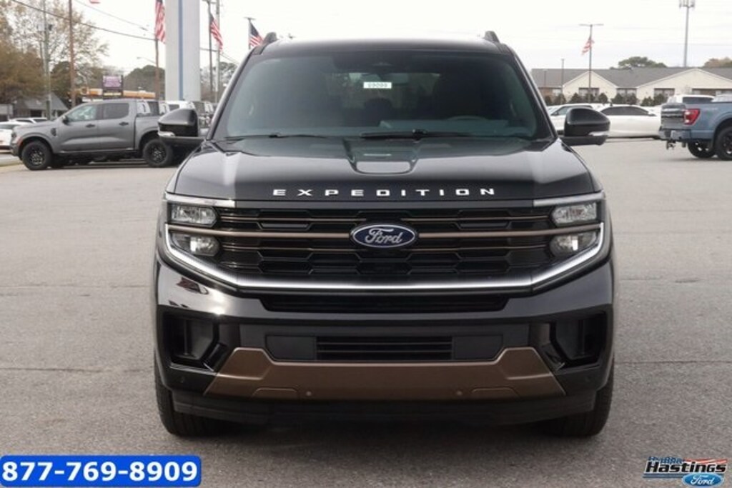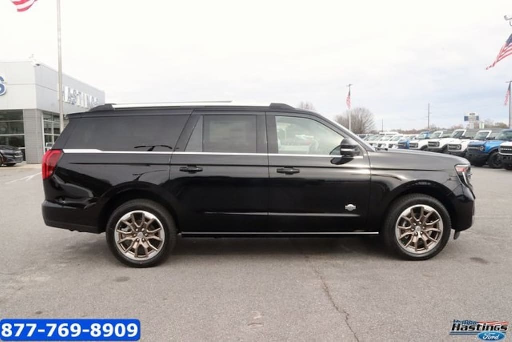 Agate Black Metallic 2026 Ford Expedition Max King Ranch 4WD 10-Speed Automatic EcoBoost 3.5L V6 GTDi DOHC 24V Twin Turbocharged 22 Speakers, 3.73 Axle Ratio, 3rd row seats: split-bench, 4-Wheel Disc Brakes, ABS brakes, Adaptive suspension, Adjustable pedals, Air Conditioning, Alloy wheels, AM/FM radio: SiriusXM with 360L, Apple CarPlay/Android Auto, Auto High-beam Headlights, Auto-dimming door mirrors, Auto-dimming Rear-View mirror, Automatic temperature control, Brake assist, Bumpers: body-color, Compass, Delay-off headlights, Digital Device Holder, Driver door bin, Driver vanity mirror, Dual front impact airbags, Dual front side impact airbags, Electronic Stability Control, Emergency communication system: 911 Assist, Equipment Group 400A, Exterior Parking Camera Rear, Ford Connectivity Package (1-Year Included), Ford Digital Experience, Four wheel independent suspension, Front anti-roll bar, Front Bucket Seats, Front Center Armrest, Front dual zone A/C, Front reading lights, Fully automatic headlights, Garage door transmitter, Genuine wood dashboard insert, Genuine wood door panel insert, Heated door mirrors, Heated front seats, Heated rear seats, Heated steering wheel, Htd/Vent Prem Del Rio Leather Fr Captain's Chairs, Illuminated entry, Leather steering wheel, Low tire pressure warning, Memory seat, Navigation System, Occupant sensing airbag, Outside temperature display, Overhead airbag, Overhead console, Panic alarm, Passenger door bin, Passenger vanity mirror, Pedal memory, Power door mirrors, Power driver seat, Power moonroof: Vista Roof, Power passenger seat, Power steering, Power windows, Radio data system, Radio: B&O Unleashed Sound System by Bang & Olufsen, Rain sensing wipers, Rear air conditioning, Rear anti-roll bar, Rear reading lights, Rear window defroster, Rear window wiper, Reclining 3rd row seat, Remote keyless entry, Security system, SiriusXM w/360L, Speed control, Speed-sensing steering, Speed-Sensitive Wipers, Split folding rear seat, Spoiler, Steering wheel memory, Steering wheel mounted audio controls, Tachometer, Telescoping steering wheel, Tilt steering wheel, Traction control, Trip computer, Turn signal indicator mirrors, Variably intermittent wipers, Ventilated front seats, Voltmeter, Wheels: 22" x 9.0" Diamond Cut Machined Face Alum.