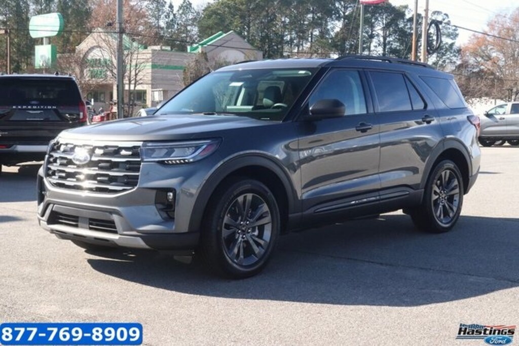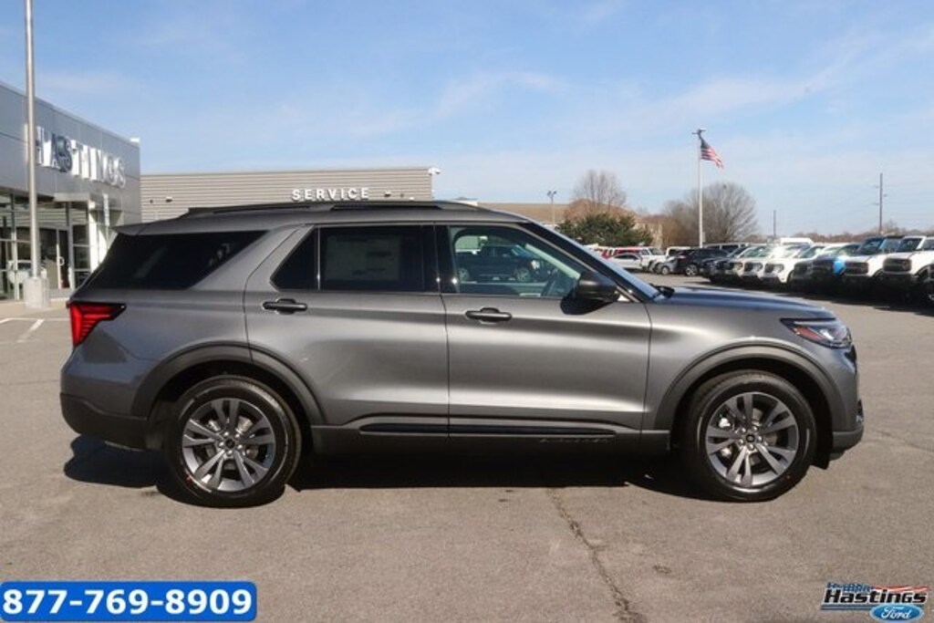 Carbonized Gray Metallic 2026 Ford Explorer Active 4WD 10-Speed Automatic 2.3L EcoBoost I-4 4WD, 3rd row seats: bench, 4-Wheel Disc Brakes, 6 Speakers, 8 USB Ports, ABS brakes, Active Badging, Active Comfort Package, Active Noise Cancellation, Air Conditioning, Alloy wheels, AM/FM radio: SiriusXM with 360L, AM/FM Stereo, Apple CarPlay/Android Auto, Auto High-beam Headlights, Automatic temperature control, Black Lower Bodyside Cladding with Chrome Accent, Black Roof-Rack Side Rails, Brake assist, Bumpers: body-color, Compass, Delay-off headlights, Driver door bin, Driver vanity mirror, Dual front impact airbags, Dual front side impact airbags, Electronic Stability Control, Emergency communication system: 911 Assist, Equipment Group 200A Standard Package, Exterior Parking Camera Rear, Four wheel independent suspension, Front anti-roll bar, Front Bucket Seats, Front Center Armrest, Front dual zone A/C, Front Fascia, Front reading lights, Fully automatic headlights, Heated ActiveX Seating Material Captain's Chairs, Heated door mirrors, Heated Steering Wheel, Illuminated entry, Internet access capable: FordPass Connect 5G, Knee airbag, Low tire pressure warning, Manual-Folding Sideview Mirrors, Navigation System, Occupant sensing airbag, Outside temperature display, Overhead airbag, Overhead console, Panic alarm, Passenger door bin, Passenger vanity mirror, Power driver seat, Power Liftgate, Power steering, Power windows, Rear air conditioning, Rear anti-roll bar, Rear reading lights, Rear window defroster, Rear window wiper, Remote keyless entry, Remote Start System, Second Row Hvac Controls, Security system, Speed control, Speed-sensing steering, Speed-Sensitive Wipers, Split folding rear seat, Spoiler, Steering wheel mounted audio controls, Tachometer, Telescoping steering wheel, Tilt steering wheel, Traction control, Trip computer, Unique Cloth Captain's Chairs, Variably intermittent wipers, Vinyl-Wrapped Steering Wheel, Wheels: 18" Sparkle Silver-Painted Aluminum, Wheels: 20" Carbonized Gray-Painted Aluminum, 4WD.