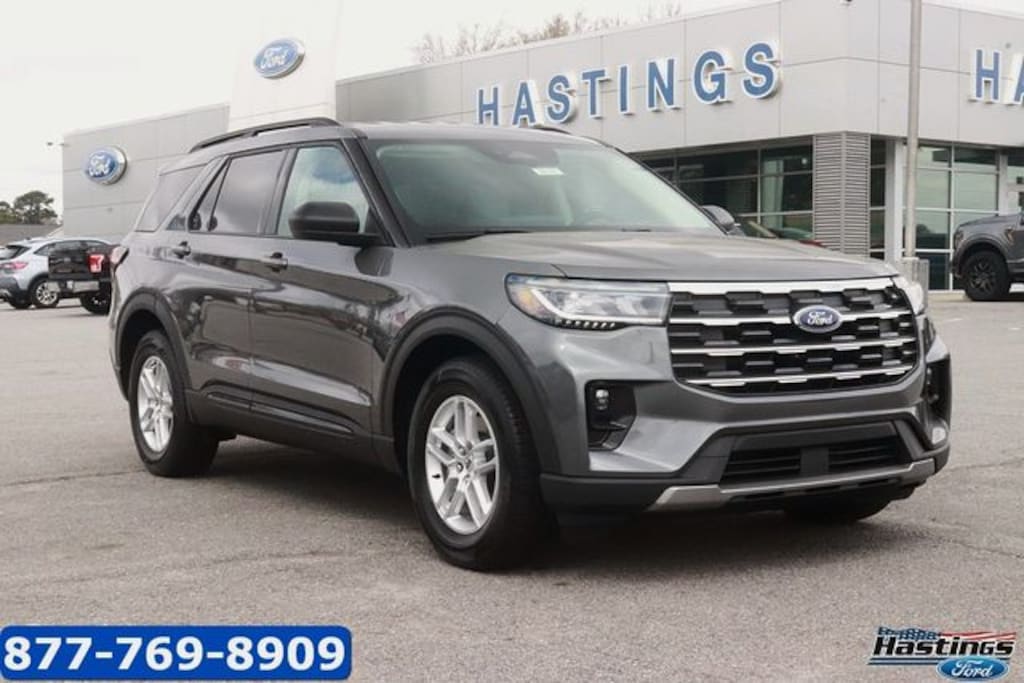 Carbonized Gray Metallic 2026 Ford Explorer Active RWD 10-Speed Automatic 2.3L EcoBoost I-4 3rd row seats: bench, 4-Wheel Disc Brakes, 6 Speakers, ABS brakes, Air Conditioning, Alloy wheels, AM/FM radio: SiriusXM with 360L, AM/FM Stereo, Apple CarPlay/Android Auto, Auto High-beam Headlights, Automatic temperature control, Brake assist, Bumpers: body-color, Compass, Delay-off headlights, Driver door bin, Driver vanity mirror, Dual front impact airbags, Dual front side impact airbags, Electronic Stability Control, Emergency communication system: 911 Assist, Exterior Parking Camera Rear, Four wheel independent suspension, Front anti-roll bar, Front Bucket Seats, Front Center Armrest, Front dual zone A/C, Front reading lights, Fully automatic headlights, Heated door mirrors, Illuminated entry, Knee airbag, Low tire pressure warning, Navigation System, Occupant sensing airbag, Outside temperature display, Overhead airbag, Overhead console, Panic alarm, Passenger door bin, Passenger vanity mirror, Power door mirrors, Power driver seat, Power steering, Power windows, Rear air conditioning, Rear anti-roll bar, Rear reading lights, Rear window defroster, Rear window wiper, Remote keyless entry, Security system, Speed control, Speed-sensing steering, Speed-Sensitive Wipers, Split folding rear seat, Spoiler, Steering wheel mounted audio controls, Tachometer, Telescoping steering wheel, Tilt steering wheel, Traction control, Trip computer, Variably intermittent wipers, Wheels: 18" Sparkle Silver-Painted Aluminum.