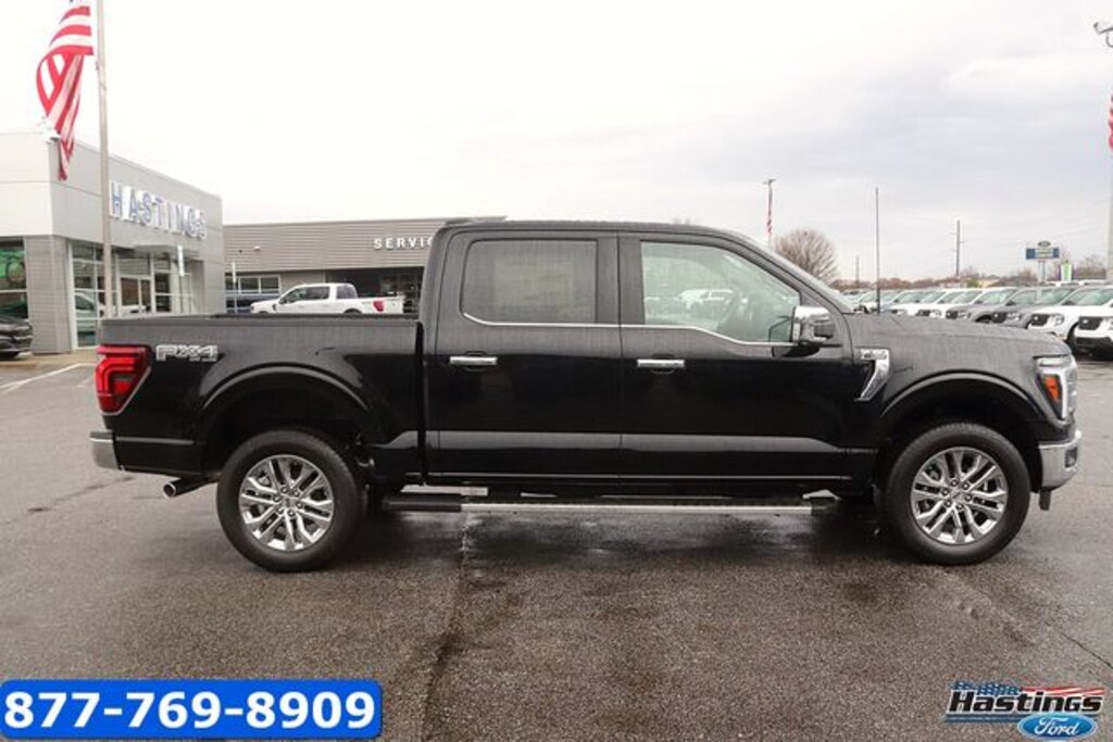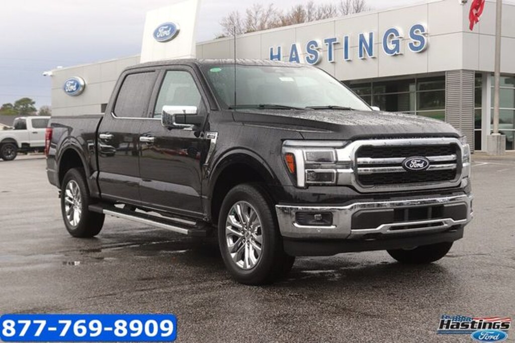 Agate Black Metallic 2026 Ford F-150 Lariat 4WD 10-Speed Automatic 3.5L V6 EcoBoost 4WD, 2nd Row Heated Seats, 4 Pickup Box Tie-Down Plates, 4-Wheel Disc Brakes, 4x4 FX4 Off-Road Bodyside Decal, 8 Speakers, ABS brakes, Air Conditioning, Alloy wheels, AM/FM radio: SiriusXM with 360L, Ambient Lighting - Ice Blue Color Only, Auto High-beam Headlights, Auto-dimming door mirrors, Auto-dimming Rear-View mirror, Automatic temperature control, Bed Storage Boxes, Bed Utility Package, Brake assist, Bumpers: chrome, Chrome wheels, Compass, Console Worksurface, Delay-off headlights, Driver door bin, Driver vanity mirror, Driver's Side SecuriCode Keyless-Entry Keypad, Dual front impact airbags, Dual front side impact airbags, Electronic Stability Control, Emergency communication system: SYNC 4 911 Assist, Equipment Group 502A High, Ford Connectivity Package (1-Year Included), Front anti-roll bar, Front Bucket Seats, Front Center Armrest, Front dual zone A/C, Front fog lights, Front License Plate Bracket, Front reading lights, Front wheel independent suspension, Fully automatic headlights, FX4 Off-Road Package, Garage door transmitter, Head-Up Display, Heated door mirrors, Heated front seats, Heated steering wheel, Hill Descent Control, Illuminated Driver and Passenger Visors, Illuminated entry, Integrated Trailer Brake Controller, Internet access capable: 5G Modem - Ford Connectivity Package, LED Box Lighting, Low tire pressure warning, Memory seat, Mobile Office Package, Monotube Rear Shocks, Navigation system: Connected Navigation, Occupant sensing airbag, Off-Road Tuned Front Shock Absorbers, Outside temperature display, Overhead airbag, Overhead console, Panic alarm, Partitioned Lockable Rear Storage, Passenger door bin, Passenger vanity mirror, Power door mirrors, Power driver seat, Power passenger seat, Power steering, Power windows, Power-Adjustable Pedals with Memory, Power-Sliding Rear Window, Radio data system, Radio: B&O Sound System by Bang and Olufsen, Radio: B&O Unleashed Sound System by Bang & Olufsen, Rain sensing wipers, Rear reading lights, Rear seat center armrest, Rear step bumper, Rear window defroster, Remote keyless entry, Rock Crawl Mode, Security system, Speed control, Split folding rear seat, Steering wheel mounted audio controls, SYNC 4 with Enhanced Voice Recognition, Tachometer, Tailgate Step with Work Surface, Telescoping steering wheel, Tilt steering wheel, Tow/Haul Package, Traction control, Tray Style Floor Liner Without Carpet Mats, Trip computer, Turn signal indicator mirrors, Twin Panel Moonroof, Variably intermittent wipers, Ventilated front seats, Wheels: 18" Chrome-Like PVD, Wheels: 20" Chrome-Like PVD, Wireless Charging, 4WD.