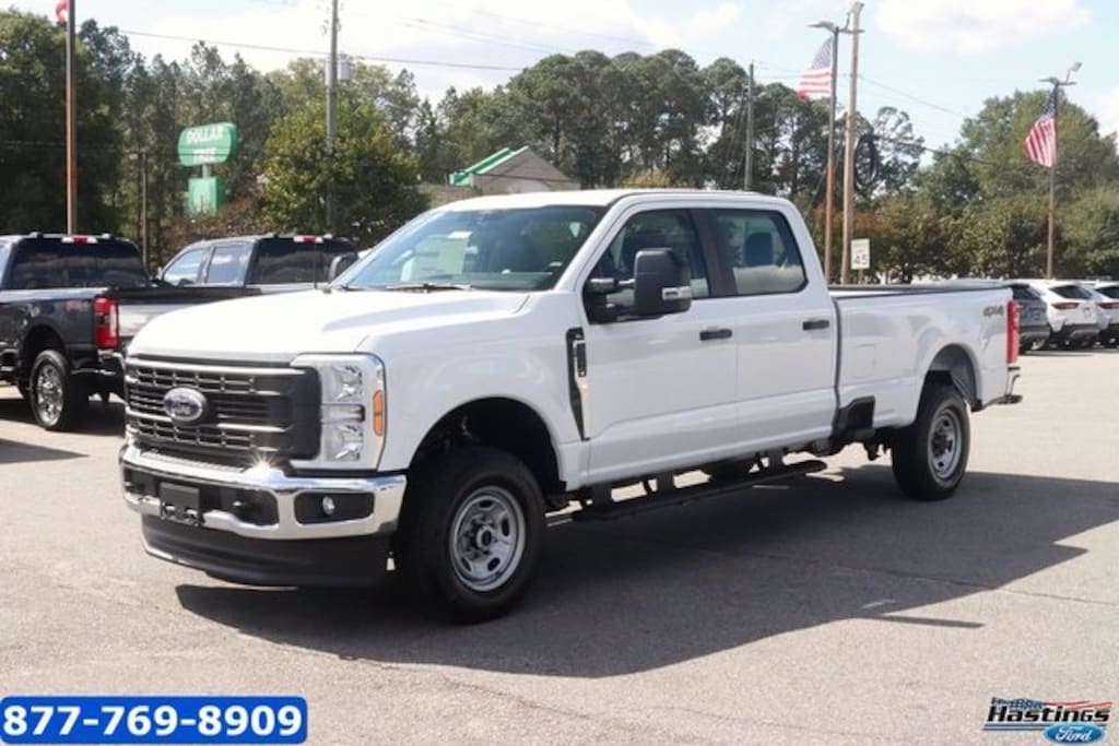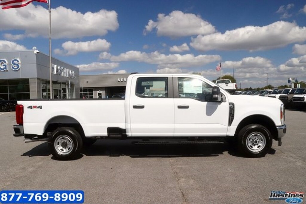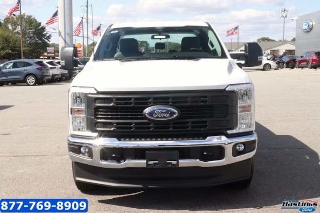 Oxford White 2026 Ford F-250SD XL 4WD 10-Speed Automatic 6.8L V8 4WD, 17" Argent Painted Steel Wheels, 250 Amp Alternator (Gas), 3.73 Axle Ratio, 4-Wheel Disc Brakes, 400W Pro Power Onboard, 6 Speakers, ABS brakes, Air Conditioning, AM/FM radio, AM/FM Stereo w/MP3 Player, Brake assist, Bright Chrome Hub Covers & Center Ornaments, Chrome Front Bumper, Chrome Rear Step Bumper, Compass, Delay-off headlights, Dual front impact airbags, Dual front side impact airbags, Electronic Stability Control, Emergency communication system: SYNC 4 911 Assist, Exterior Parking Camera Rear, Ford Connectivity Package (1-Year Included), Front anti-roll bar, Front Center Armrest w/Storage, Front License Plate Bracket, Front reading lights, Fully automatic headlights, GVWR: 10,000 lb Payload Package, Halogen Fog Lamps, HD Vinyl 40/20/40 Split Bench Seat, Heated door mirrors, Illuminated entry, Internet access capable: 5G Modem - Ford Connectivity Package, Low tire pressure warning, Outside temperature display, Overhead airbag, Overhead console, Panic alarm, Passenger vanity mirror, Platform Running Boards, Power door mirrors, Power steering, Power windows, Rear reading lights, Rear step bumper, Remote keyless entry, Security system, Speed control, Split folding rear seat, Steering wheel mounted audio controls, SYNC 4, Tachometer, Telescoping steering wheel, Tilt steering wheel, Traction control, Trip computer, Turn signal indicator mirrors, Upfitter Switches (6), Variably intermittent wipers, XL Chrome Package, XL Driver Assist Package, 4WD.