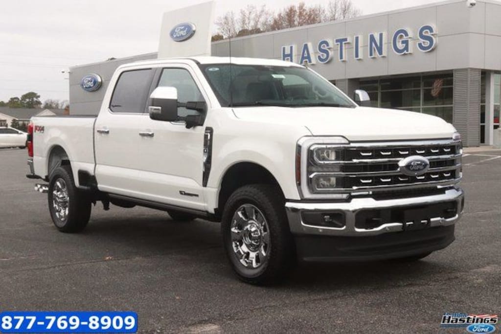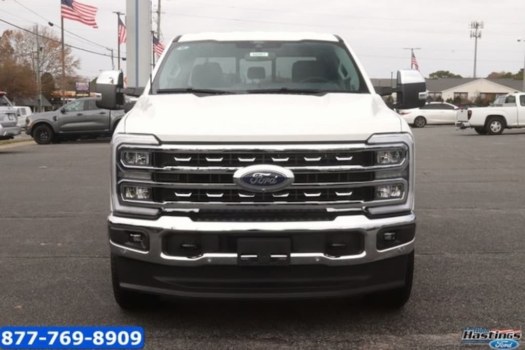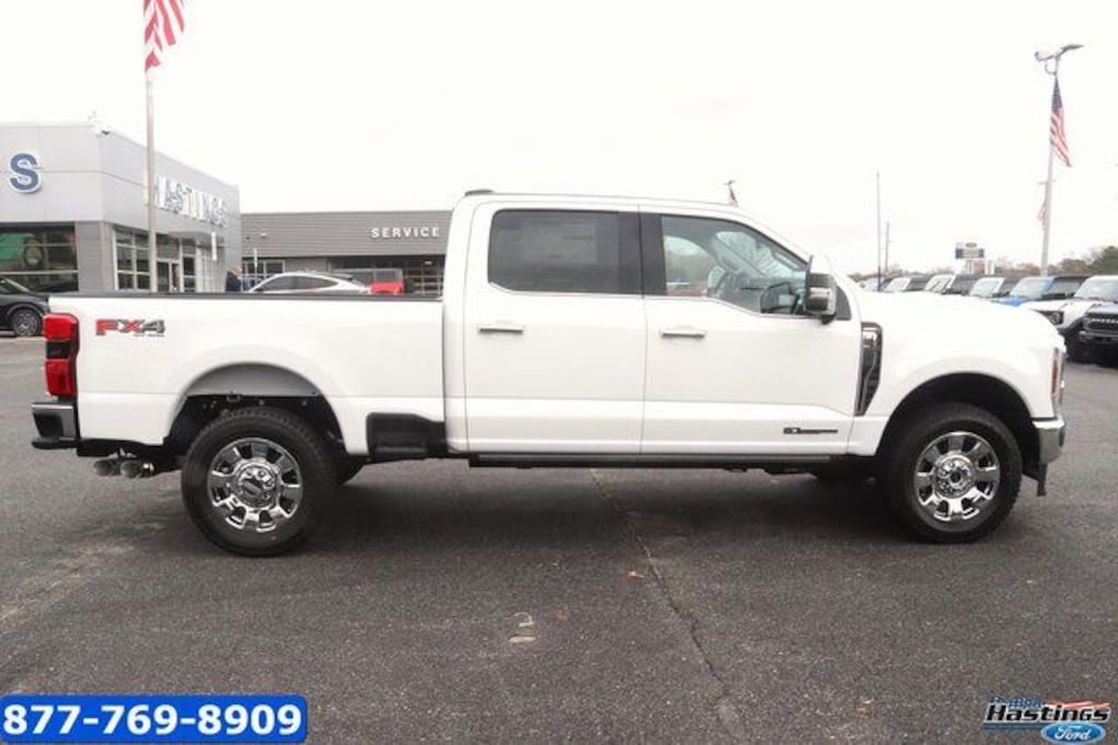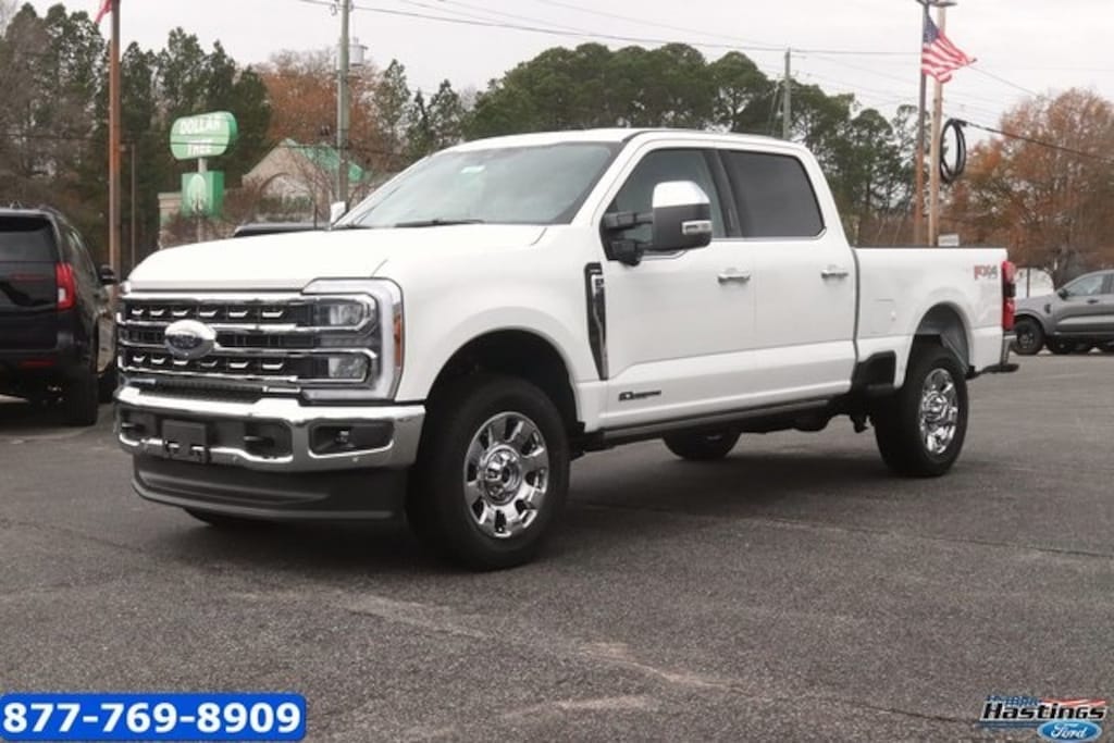 Star White Metallic Tri-Coat 2026 Ford F-350SD Lariat 4WD 10-Speed Automatic Power Stroke 6.7L V8 DI 32V OHV Turbodiesel 4WD, 190 Amp Alternator, 4-Wheel Disc Brakes, 5th Wheel/Gooseneck Hitch Prep Package, 8 Speakers, ABS brakes, Adaptive Cruise Control with Stop-and-Go, Adjustable pedals, Air Conditioning, All-Weather Floor Mats, Alloy wheels, AM/FM radio: SiriusXM with 360L, Auto High-beam Headlights, Auto-dimming Rear-View mirror, Automatic High Beam, Automatic temperature control, BLIS with Cross-Traffic Alert, Brake assist, Bumpers: chrome, Chrome Package, Compass, Delay-off headlights, Driver door bin, Driver vanity mirror, Dual AGM 68 AH Battery, Dual front impact airbags, Dual front side impact airbags, Electronic Stability Control, Emergency communication system: SYNC 4 911 Assist, Flow-Through Console, Ford Connectivity Package (1-Year Included), Front ActiveX Trimmed 40/Console/40 Seats, Front and Rear Parking Sensors, Front anti-roll bar, Front Bucket Seats, Front Center Armrest, Front dual zone A/C, Front fog lights, Front License Plate Bracket, Front reading lights, Fully automatic headlights, FX4 Off-Road Package, Garage door transmitter, Heated door mirrors, Heated front seats, Heated rear seats, Heated steering wheel, Hill Descent Control, Illuminated entry, Internet access capable: 5G Modem - Ford Connectivity Package, Lane-Keeping System, Lariat Premium Package, Low tire pressure warning, Memory seat, Navigation system: Connected Navigation, Off-Road Specifically Tuned Shock Absorbers, Order Code 618A, Outside temperature display, Overhead airbag, Overhead console, Panic alarm, Passenger door bin, Passenger vanity mirror, Pedal memory, Post-Collision Braking, Power door mirrors, Power driver seat, Power passenger seat, Power steering, Power windows, Power-Deployable Running Boards, Power-Sliding Rear-Window with Defrost, Pre-Collision Assist, Privacy Glass, Pro Trailer Backup Assist, Pro Trailer Hitch Assist, Radio: B&O Sound System by Bang and Olufsen, Rain sensing wipers, Rear Parking Sensors, Rear reading lights, Rear seat center armrest, Rear step bumper, Rear window defroster, Remote keyless entry, SecuriCode Keyless Entry Keypad (driver's Side), Security system, SiriusXM with 360L, Speed control, Split folding rear seat, Steering wheel mounted audio controls, SYNC 4 with Enhanced Voice Recognition, Tachometer, Tailgate Step and Handle, Telescoping steering wheel, Tilt steering wheel, Traction control, Trip computer, Turn signal indicator mirrors, Unique FX4 Off-Road Box Decal, Upfitter Switches (6), Variably intermittent wipers, Ventilated front seats, Wheels: 18" Bright Machined and Carbonized Gray Aluminum, 4WD.
