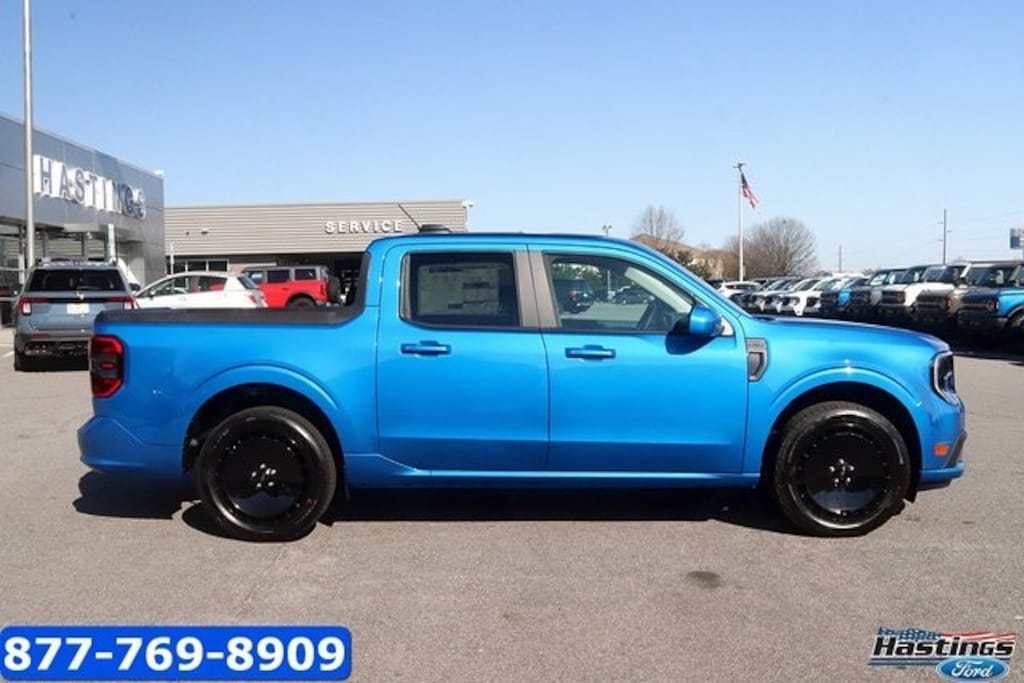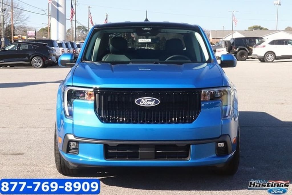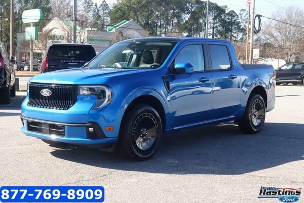 Velocity Blue 2026 Ford Maverick Lobo Standard AWD 7-Speed Automatic EcoBoost 2.0L I4 GTDi DOHC Turbocharged VCT 3.63 Axle Ratio, 4-Wheel Disc Brakes, 6 Speakers, ABS brakes, ActiveX Trimmed Front Bucket Seats, Air Conditioning, Alloy wheels, AM/FM radio: SiriusXM with 360L, Apple CarPlay/Android Auto, Auto High-beam Headlights, Automatic temperature control, Brake assist, Bumpers: body-color, Compass, Delay-off headlights, Driver door bin, Driver vanity mirror, Dual front impact airbags, Dual front side impact airbags, Electronic Stability Control, Emergency communication system: SYNC 4 911 Assist, Equipment Group 402A Standard, Exterior Parking Camera Rear, Ford Connectivity Package (1-Year Included), Four wheel independent suspension, Front anti-roll bar, Front Bucket Seats, Front Center Armrest, Front fog lights, Front reading lights, Fully automatic headlights, Illuminated entry, Internet access capable: 5G Modem - Ford Connectivity Package, Knee airbag, Low tire pressure warning, Occupant sensing airbag, Outside temperature display, Overhead airbag, Overhead console, Panic alarm, Passenger door bin, Passenger vanity mirror, Power door mirrors, Power driver seat, Power steering, Power windows, Radio data system, Radio: AM/FM Stereo with 6 Speakers, Rear anti-roll bar, Rear Parking Sensors, Rear seat center armrest, Rear step bumper, Remote keyless entry, Security system, SiriusXM with 360L, Speed control, Speed-sensing steering, Steering wheel mounted audio controls, SYNC 4 with Enhanced Voice Recognition, Tachometer, Telescoping steering wheel, Tilt steering wheel, Traction control, Trip computer, Wheels: 19" Turbofan-Stuled Black Painted Aluminum.