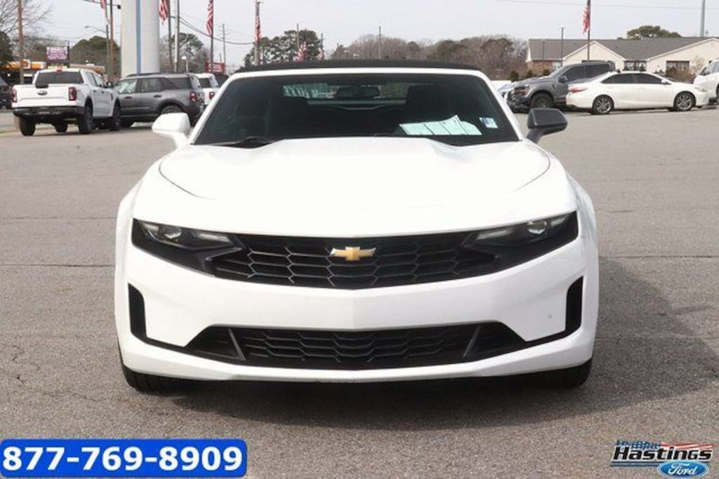Summit White 2023 Chevrolet Camaro 1LT RWD 8-Speed Automatic 2.0L Turbocharged Camaro 1LT, 2D Convertible, 2.0L Turbocharged, 8-Speed Automatic, RWD, Summit White, 18" Silver-Painted Aluminum Wheels, 4-Wheel Disc Brakes, 6 Speakers, 6-Speaker Audio System Feature, 6-Way Power Front Passenger Seat Adjuster, 8-Way Power Driver Seat Adjuster, ABS brakes, Air Conditioning, Alloy wheels, AM/FM radio: SiriusXM, Apple CarPlay/Android Auto, Automatic temperature control, Bluetooth® For Phone, Brake assist, Bumpers: body-color, Cloth Seat Trim, Compass, Convertible roof lining, Delay-off headlights, Deleted 3 Years of Remote Access, Driver door bin, Driver vanity mirror, Dual front impact airbags, Dual front side impact airbags, Electronic Stability Control, Exterior Parking Camera Rear, Four wheel independent suspension, Front anti-roll bar, Front Bucket Seats, Front Center Armrest, Front reading lights, Front Sport Bucket Seats, Fully automatic headlights, Glass rear window, Illuminated entry, Knee airbag, Leather Shift Knob, Low tire pressure warning, Occupant sensing airbag, Paddle-Shift Manual Controls, Panic alarm, Passenger door bin, Passenger vanity mirror, Power convertible roof, Power door mirrors, Power driver seat, Power passenger seat, Power steering, Power windows, Preferred Equipment Group 1LT, Premium audio system: Chevrolet Infotainment System, Radio data system, Radio: Chevrolet Infotainment 3 System, Rear anti-roll bar, Rear window defroster, Remote keyless entry, Remote Vehicle Starter System, Security system, SiriusXM Radio, Speed control, Speed-sensing steering, Spoiler, Steering wheel mounted audio controls, Tachometer, Telescoping steering wheel, Tilt steering wheel, Tire Inflation Kit, Traction control, Trip computer, Variably intermittent wipers, Voltmeter, Camaro 1LT, 2D Convertible, 2.0L Turbocharged, 8-Speed Automatic, RWD, Summit White.