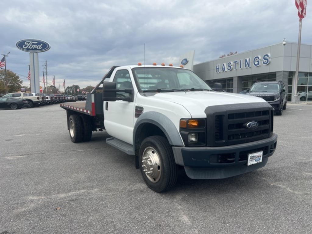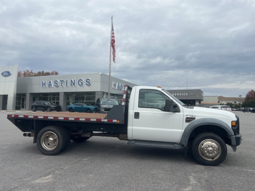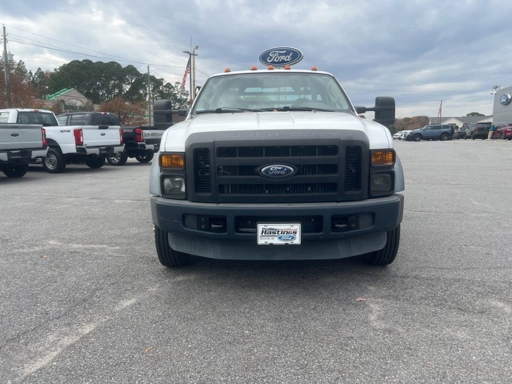 Oxford White Clearcoat 2008 Ford F-450SD DRW RWD TorqShift 5-Speed Automatic with Overdrive Power Stroke 6.4L V8 DI 32V OHV Twin Turbo Diesel Power Stroke 6.4L V8 DI 32V OHV Twin Turbo Diesel, RWD, GVWR: 16,000 lb Payload Package, 19.5" Argent Painted Steel Wheels, 2 Speakers, 4-Wheel Disc Brakes, 4.88 Axle Ratio, ABS brakes, AM/FM radio, AM/FM Stereo w/Digital Clock, Dual front impact airbags, Dual rear wheels, Front anti-roll bar, Front Center Armrest, Front reading lights, HD Vinyl Full Bench Seat w/Recline, Passenger cancellable airbag, Passenger vanity mirror, Power steering, Rear anti-roll bar, Tachometer, Trip computer, Variably intermittent wipers, Voltmeter, Power Stroke 6.4L V8 DI 32V OHV Twin Turbo Diesel, RWD, GVWR: 16,000 lb Payload Package.