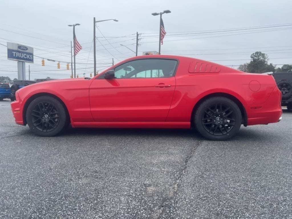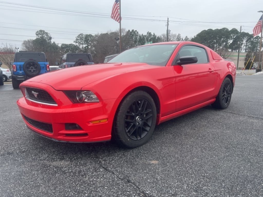 Race Red 2014 Ford Mustang V6 RWD 6-Speed Automatic 3.7L V6 Ti-VCT 24V Mustang V6, 2D Coupe, 3.7L V6 Ti-VCT 24V, 6-Speed Automatic, RWD, Race Red, Black Cloth, 17" x 7" Sparkle Silver Painted Aluminum Wheels, 4 Speakers, 4-Wheel Disc Brakes, 6-Way Power Driver Seat, ABS brakes, Active Anti-Theft System, Air Conditioning, Alloy wheels, AM/FM radio, Auto-Dimming Mirror, Black Painted Decklid Spoiler, Black Painted Outside Mirror Skull Caps, Brake assist, Bumpers: body-color, CD player, Cloth Bucket Seats, Compass, Delay-off headlights, Driver door bin, Driver vanity mirror, Dual front impact airbags, Dual front side impact airbags, Electronic Stability Control, Equipment Group 102A, Fog Lamps, FP6 Appearance Package, Front anti-roll bar, Front Bucket Seats, Front Center Armrest, Front reading lights, Front wheel independent suspension, High-Intensity Discharge Headlights, Illuminated entry, Low tire pressure warning, Occupant sensing airbag, Outside temperature display, Panic alarm, Passenger door bin, Passenger vanity mirror, Power door mirrors, Power steering, Power windows, Premium AM/FM Stereo w/Single CD/Clock, Radio data system, Rear anti-roll bar, Rear window defroster, Remote keyless entry, Reverse Sensing System, Reverse Sensing System & Security Package, Speed control, Speed-sensing steering, Split folding rear seat, Steering wheel mounted audio controls, SYNC Communications & Entertainment System, Tachometer, Tech Package, Tilt steering wheel, Traction control, Trip computer, Variably intermittent wipers, Wheel Locking Kit, Wheels: 18" x 8" Painted Black Aluminum, Mustang V6, 2D Coupe, 3.7L V6 Ti-VCT 24V, 6-Speed Automatic, RWD, Race Red, Black Cloth.