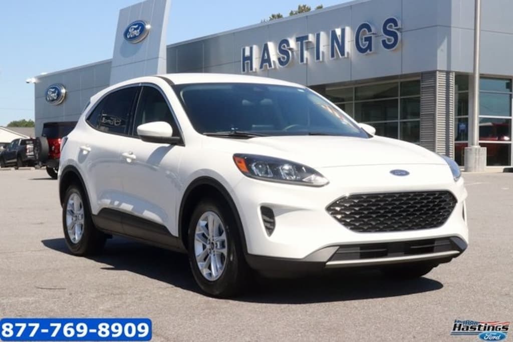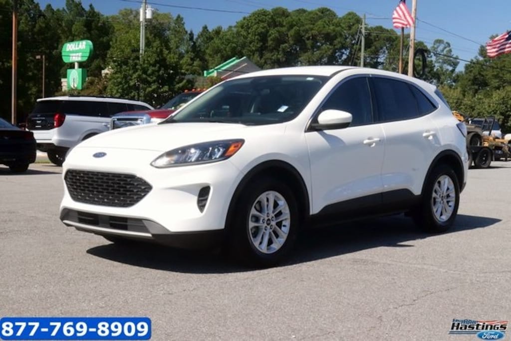 Oxford White 2020 Ford Escape SE FWD 8-Speed Automatic 1.5L EcoBoost Escape SE, 4D Sport Utility, 1.5L EcoBoost, 8-Speed Automatic, FWD, Oxford White, Ebony Cloth, 3.52 Axle Ratio, 4-Wheel Disc Brakes, 6 Speakers, ABS brakes, Adaptive Cruise Control w/Stop-and-Go, Air Conditioning, Alloy wheels, AM/FM radio: SiriusXM, AM/FM Stereo, Auto High-beam Headlights, Automatic temperature control, Brake assist, Bumpers: body-color, Compass, Delay-off headlights, Driver door bin, Driver vanity mirror, Dual front impact airbags, Dual front side impact airbags, Electronic Stability Control, Emergency communication system: SYNC 3 911 Assist, Equipment Group 200A, Exterior Parking Camera Rear, Ford Co-Pilot360 Assist, FordPass Connect, Four wheel independent suspension, Front anti-roll bar, Front Bucket Seats, Front Center Armrest, Front License Plate Bracket, Front reading lights, Fully automatic headlights, Heated door mirrors, Heated front seats, Heated Unique Cloth Front Bucket Seats, Illuminated entry, Knee airbag, Low tire pressure warning, Occupant sensing airbag, Outside temperature display, Overhead airbag, Overhead console, Panic alarm, Passenger door bin, Passenger vanity mirror, Power door mirrors, Power driver seat, Power steering, Power windows, Radio data system, Rear anti-roll bar, Rear reading lights, Rear seat center armrest, Rear window defroster, Rear window wiper, Remote keyless entry, Speed control, Speed-sensing steering, Speed-Sensitive Wipers, Split folding rear seat, Spoiler, Steering wheel mounted audio controls, SYNC 3 Communications & Entertainment System, Tachometer, Telescoping steering wheel, Tilt steering wheel, Traction control, Trip computer, Variably intermittent wipers, Voice-Activated Touchscreen Navigation System, Wheels: 17" Shadow Silver-Painted Aluminum, Escape SE, 4D Sport Utility, 1.5L EcoBoost, 8-Speed Automatic, FWD, Oxford White, Ebony Cloth.
