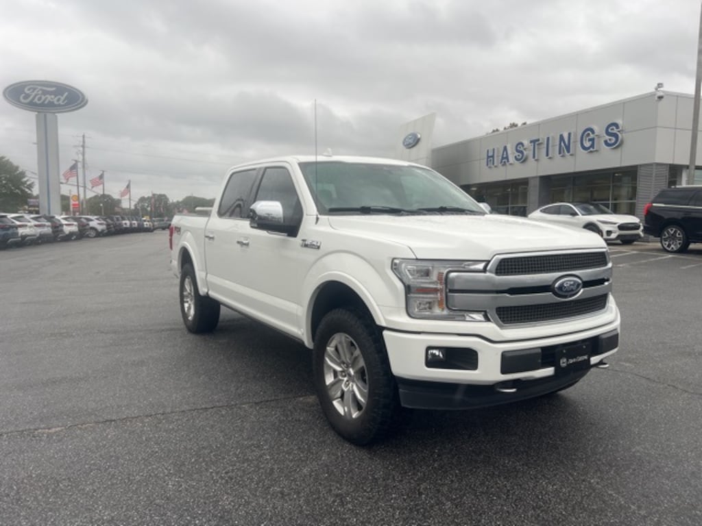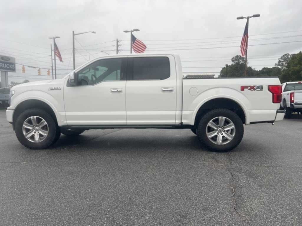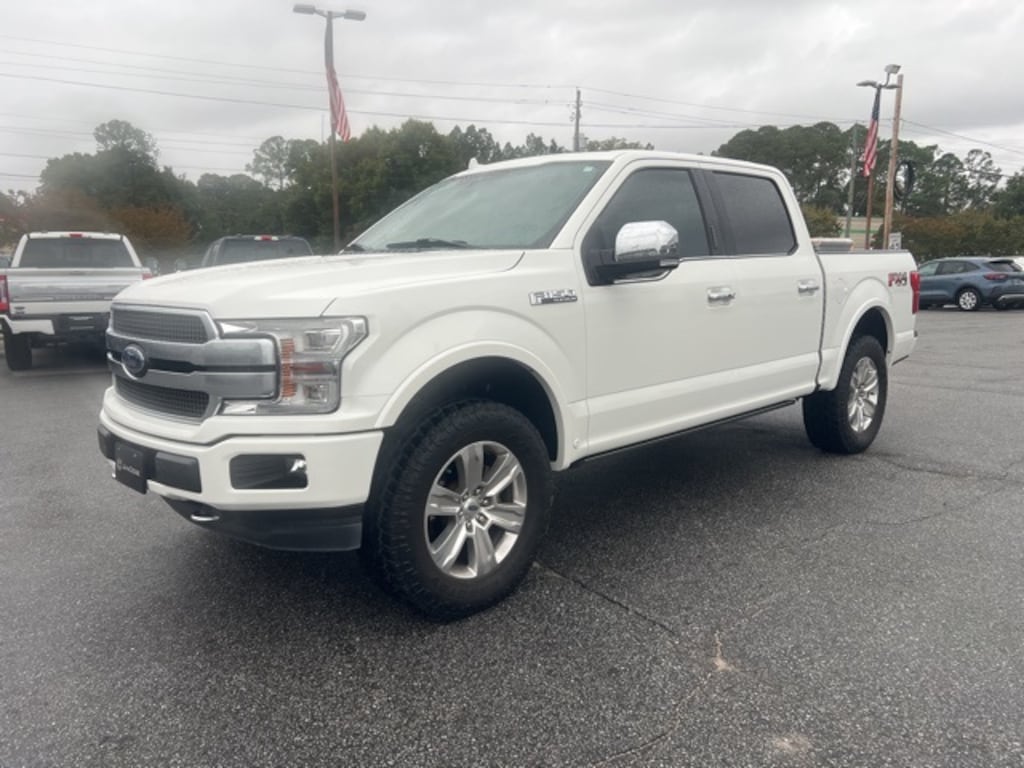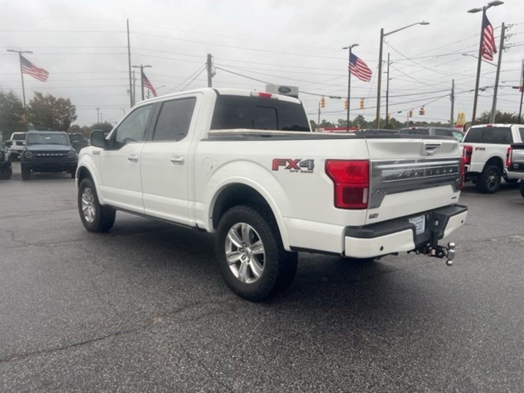 White 2020 Ford F-150 Platinum 4WD 10-Speed Automatic 3.5L V6 EcoBoost F-150 Platinum, 4D SuperCrew, 3.5L V6 EcoBoost, 10-Speed Automatic, 4WD, White, Black Leather, 360 Camera w/Split-View Display, 4x4 FX4 Off-Road Bodyside Decal, Active Park Assist, Class IV Trailer Hitch Receiver, Electronic Locking w/3.55 Axle Ratio, Engine Oil Cooler, Equipment Group 701A Luxury, Extended Range 36 Gallon Fuel Tank, FX4 Off-Road Package, GVWR: 7,050 lbs Payload Package, Hill Descent Control, Integrated Trailer Brake Controller, Max Trailer Tow Package, Off-Road Tuned Front Shock Absorbers, Pro Trailer Backup Assist, Tailgate Step w/Tailgate Lift Assist, Technology Package, Tray Style Floor Liner, Upgraded Front Stabilizer Bar, 10 Speakers, 20" Polished Aluminum Wheels, 4-Wheel Disc Brakes, ABS brakes, Adaptive Cruise Control, Adjustable pedals, Air Conditioning, Alloy wheels, AM/FM radio: SiriusXM, Auto High-beam Headlights, Auto tilt-away steering wheel, Auto-dimming door mirrors, Auto-dimming Rear-View mirror, Automatic temperature control, Black Unique Multi-Contour Leather Bucket Seats, Brake assist, Bumpers: body-color, Compass, Delay-off headlights, Driver door bin, Driver vanity mirror, Dual front impact airbags, Dual front side impact airbags, Electronic Stability Control, Emergency communication system: SYNC 3 911 Assist, Exterior Parking Camera Rear, Front anti-roll bar, Front Bucket Seats, Front Center Armrest, Front dual zone A/C, Front fog lights, Front License Plate Bracket, Front reading lights, Front wheel independent suspension, Fully automatic headlights, Garage door transmitter, Genuine wood door panel insert, Heated door mirrors, Heated front seats, Heated rear seats, Heated steering wheel, Illuminated entry, Low tire pressure warning, Memory seat, Navigation System, Occupant sensing airbag, Outside temperature display, Overhead airbag, Overhead console, Panic alarm, Passenger door bin, Passenger vanity mirror, Pedal memory, Power door mirrors, Power driver seat, Power passenger seat, Power steering, Power windows, Radio data system, Radio: B&O Sound System by Bang & Olufsen, Rain sensing wipers, Rear Parking Sensors, Rear reading lights, Rear seat center armrest, Rear step bumper, Rear window defroster, Remote keyless entry, Security system, SiriusXM Radio, Speed control, Speed-sensing steering, Split folding rear seat, Steering wheel memory, Steering wheel mounted audio controls, SYNC 3, Tachometer, Telescoping steering wheel, Tilt steering wheel, Tough Bed Spray-In Bedliner, Traction control, Trip computer, Turn signal indicator mirrors, Twin Panel Moonroof, Variably intermittent wipers, Ventilated front seats, Voice-Activated Touchscreen Navigation, Voltmeter, Wheel Well Liner, F-150 Platinum, 4D SuperCrew, 3.5L V6 EcoBoost, 10-Speed Automatic, 4WD, White, Black Leather, 360 Camera w/Split-View Display, 4x4 FX4 Off-Road Bodyside Decal, Active Park Assist, Class IV Trailer Hitch Receiver, Electronic Locking w/3.55 Axle Ratio, Engine Oil Cooler, Equipment Group 701A Luxury, Extended Range 36 Gallon Fuel Tank, FX4 Off-Road Package, GVWR: 7,050 lbs Payload Package, Hill Descent Control, Integrated Trailer Brake Controller, Max Trailer Tow Package, Off-Road Tuned Front Shock Absorbers, Pro Trailer Backup Assist, Tailgate Step w/Tailgate Lift Assist, Technology Package, Tray Style Floor Liner, Upgraded Front Stabilizer Bar.