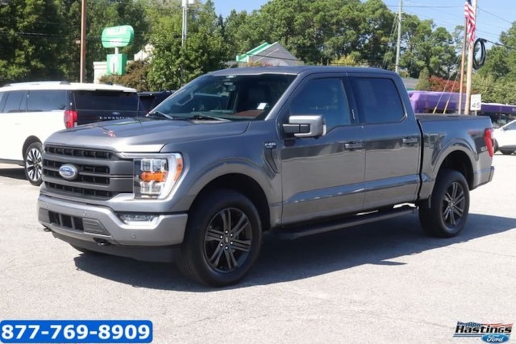 Carbonized Gray Metallic 2022 Ford F-150 Lariat 4WD 10-Speed Automatic 3.5L V6 EcoBoost F-150 Lariat, 4D SuperCrew, 3.5L V6 EcoBoost, 10-Speed Automatic, 4WD, Carbonized Gray Metallic, Black w/Leather Trim Seats, 4x4 FX4 Off-Road Bodyside Decal, Accent-Color Angular Step Bars, Bed Utility Package, Body-Color Front & Rear Bumpers, Box Side Decals, BoxLink, Chrome Single-Tip Exhaust, Class IV Trailer Hitch Receiver, Connected Built-In Navigation, Dark 2-Bar & 1 Minor Bar Style Grille, Equipment Group 501A Mid, Evasive Steering Assist, Ford Co-Pilot360 Assist 2.0 (DISC), FX4 Off-Road Package, Hill Descent Control, Integrated Trailer Brake Controller, Intelligent Adaptive Cruise Control w/Stop & Go, Intersection Assist, Lariat Sport Appearance Package, LED Box Lighting, Monotube Rear Shocks, Off-Road Tuned Front Shock Absorbers, Onboard 400W Outlet, Power Tailgate, Pro Trailer Backup Assist, Radio: B&O Sound System by Bang & Olufsen, Rock Crawl Mode, Speed Sign Recognition, Tailgate Step w/Tailgate Work Surface, Trailer Tow Package, Tray Style Floor Liner (47W), Universal Garage Door Opener, Wheels: 18" 6-Spoke Machined Aluminum, 18" Machined-Aluminum Wheels, 360 Degree Camera, 4-Wheel Disc Brakes, 7 Speakers, ABS brakes, Adjustable pedals, Air Conditioning, Alloy wheels, AM/FM radio: SiriusXM with 360L, Auto High-beam Headlights, Auto Start-Stop Removal, Auto-dimming door mirrors, Auto-dimming Rear-View mirror, Automatic temperature control, Brake assist, Bumpers: chrome, Compass, Delay-off headlights, Driver door bin, Driver vanity mirror, Dual front impact airbags, Dual front side impact airbags, Electronic Locking w/3.55 Axle Ratio, Electronic Stability Control, Emergency communication system: SYNC 4 911 Assist, Extended Range 36 Gallon Fuel Tank, Exterior Parking Camera Rear, Front anti-roll bar, Front Center Armrest w/Storage, Front dual zone A/C, Front fog lights, Front reading lights, Front wheel independent suspension, Fully automatic headlights, Heated door mirrors, Heated front seats, Illuminated entry, Leather-Trimmed 40/20/40 Front Seat, LED Sideview Mirror Spotlights, Low tire pressure warning, Memory seat, Occupant sensing airbag, Outside temperature display, Overhead airbag, Overhead console, Panic alarm, Passenger door bin, Passenger vanity mirror, Pedal memory, Power door mirrors, Power driver seat, Power passenger seat, Power steering, Power windows, Radio data system, Radio: AM/FM SiriusXM w/360L, Rear reading lights, Rear seat center armrest, Rear step bumper, Rear window defroster, Remote keyless entry, Security system, Speed control, Speed-sensing steering, Split folding rear seat, Steering wheel mounted audio controls, SYNC 4 w/Enhanced Voice Recognition, Tachometer, Telescoping steering wheel, Tilt steering wheel, Traction control, Trip computer, Turn signal indicator mirrors, Variably intermittent wipers, Ventilated front seats, Voltmeter, Wheels: 20" 6-Spoke Dark Alloy Painted Aluminum, Wireless Charging Pad, F-150 Lariat, 4D SuperCrew, 3.5L V6 EcoBoost, 10-Speed Automatic, 4WD, Carbonized Gray Metallic, Black w/Leather Trim Seats, 4x4 FX4 Off-Road Bodyside Decal, Accent-Color Angular Step Bars, Bed Utility Package, Body-Color Front & Rear Bumpers, Box Side Decals, BoxLink, Chrome Single-Tip Exhaust, Class IV Trailer Hitch Receiver, Connected Built-In Navigation, Dark 2-Bar & 1 Minor Bar Style Grille, Equipment Group 501A Mid, Evasive Steering Assist, Ford Co-Pilot360 Assist 2.0 (DISC), FX4 Off-Road Package, Hill Descent Control, Integrated Trailer Brake Controller, Intelligent Adaptive Cruise Control w/Stop & Go, Intersection Assist, Lariat Sport Appearance Package, LED Box Lighting, Monotube Rear Shocks, Off-Road Tuned Front Shock Absorbers, Onboard 400W Outlet, Power Tailgate, Pro Trailer Backup Assist, Radio: B&O Sound System by Bang & Olufsen, Rock Crawl Mode, Speed Sign Recognition, Tailgate Step w/Tailgate Work Surface, Trailer Tow Package, Tray Style Floor Liner (47W), Universal Garage Door Opene