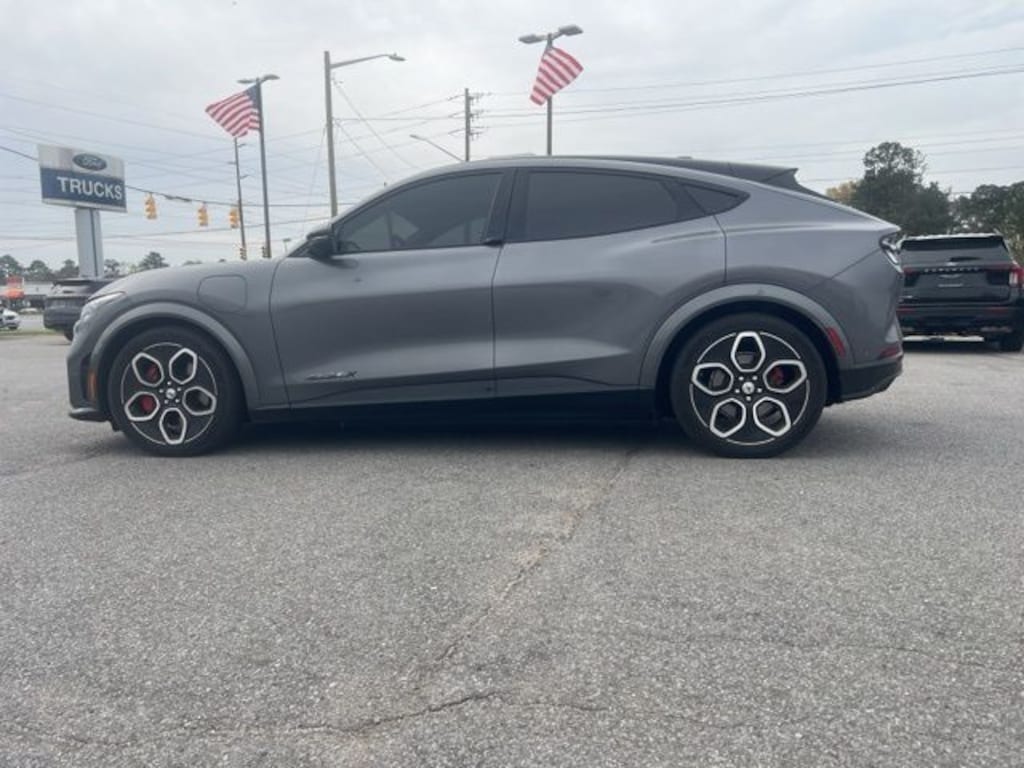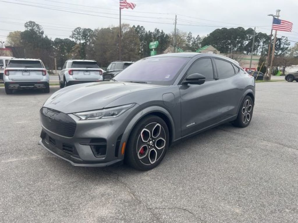 Carbonized Gray Metallic 2023 Ford Mustang Mach-E GT AWD Single-Speed Automatic Dual Electric Motor Mustang Mach-E GT, 4D Sport Utility, Dual Electric Motor, Single-Speed Automatic, AWD, Carbonized Gray Metallic, Black Onyx With Copper Metallic Stitching Leatherette, 10 Speakers, 1st & 2nd Row Floor Liners w/o Carpet Mats, 4-Wheel Disc Brakes, ABS brakes, Air Conditioning, Alloy wheels, AM/FM radio: SiriusXM with 360L, AM/FM Stereo, Apple CarPlay/Android Auto, Auto High-beam Headlights, Auto-dimming Rear-View mirror, Automatic temperature control, Axle Ratio: 9.05, Brake assist, Bumpers: body-color, Cargo Floor Liner, Compass, Delay-off headlights, Driver door bin, Driver vanity mirror, Dual front impact airbags, Dual front side impact airbags, Electronic Stability Control, Emergency communication system: 911 Assist, Equipment Group 400A, Exterior Parking Camera Rear, Four wheel independent suspension, Front anti-roll bar, Front Bucket Seats, Front Center Armrest, Front dual zone A/C, Front reading lights, Fully automatic headlights, Garage door transmitter, Heated ActiveX Sport Seats, Heated door mirrors, Heated front seats, Heated steering wheel, Illuminated entry, Interior Protection Package (Pre-Installed), Knee airbag, Low tire pressure warning, Memory seat, Navigation system: Connected Navigation, Occupant sensing airbag, Outside temperature display, Overhead airbag, Overhead console, Panic alarm, Passenger door bin, Passenger vanity mirror, Power door mirrors, Power driver seat, Power Liftgate, Power passenger seat, Power steering, Power windows, Radio data system, Rain sensing wipers, Rear anti-roll bar, Rear seat center armrest, Rear side impact airbag, Rear window defroster, Rear window wiper, Remote keyless entry, Security system, SiriusXM Radio w/360L, Speed control, Speed-sensing steering, Speed-Sensitive Wipers, Split folding rear seat, Spoiler, Steering wheel mounted audio controls, SYNC 4A w/Enhanced Voice Recognition, Telescoping steering wheel, Tilt steering wheel, Traction control, Trip computer, Turn signal indicator mirrors, Variably intermittent wipers, Wheels: 20" Machined-Face Aluminum, Mustang Mach-E GT, 4D Sport Utility, Dual Electric Motor, Single-Speed Automatic, AWD, Carbonized Gray Metallic, Black Onyx With Copper Metallic Stitching Leatherette.