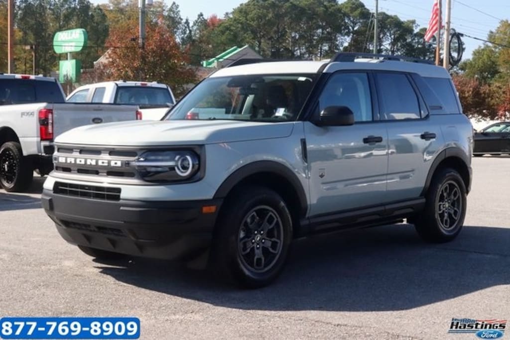 Cactus 2024 Ford Bronco Sport Big Bend 4WD 8-Speed Automatic 1.5L EcoBoost Bronco Sport Big Bend, 4D Sport Utility, 1.5L EcoBoost, 8-Speed Automatic, 4WD, Cactus, Ebony Cloth, Equipment Group 200A, 3.80 Axle Ratio, 4-Wheel Disc Brakes, 6 Speakers, ABS brakes, Air Conditioning, Alloy wheels, AM/FM radio: SiriusXM, AM/FM Stereo, Auto High-beam Headlights, Automatic temperature control, Brake assist, Compass, Delay-off headlights, Driver door bin, Driver vanity mirror, Dual front impact airbags, Dual front side impact airbags, Electronic Stability Control, Emergency communication system: SYNC 3 911 Assist, Four wheel independent suspension, Front anti-roll bar, Front Bucket Seats, Front Center Armrest, Front License Plate Bracket, Front reading lights, Fully automatic headlights, Heated door mirrors, Illuminated entry, Knee airbag, Low tire pressure warning, Occupant sensing airbag, Outside temperature display, Overhead airbag, Overhead console, Panic alarm, Passenger door bin, Passenger vanity mirror, Power door mirrors, Power steering, Power windows, Radio data system, Rear anti-roll bar, Rear reading lights, Rear seat center armrest, Rear window defroster, Rear window wiper, Remote keyless entry, Security system, SiriusXM, Speed control, Speed-sensing steering, Speed-Sensitive Wipers, Split folding rear seat, Steering wheel mounted audio controls, SYNC 3 Communications & Entertainment System, Tachometer, Telescoping steering wheel, Tilt steering wheel, Traction control, Trip computer, Unique Cloth Front Bucket Seats, Variably intermittent wipers, Wheels: 17" Carbonized Gray-Painted Aluminum, Bronco Sport Big Bend, 4D Sport Utility, 1.5L EcoBoost, 8-Speed Automatic, 4WD, Cactus, Ebony Cloth, Equipment Group 200A.