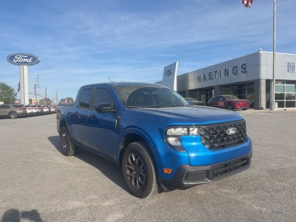 Velocity Blue 2025 Ford Maverick XLT AWD 8-Speed Automatic EcoBoost 2.0L I4 GTDi DOHC Turbocharged VCT Maverick XLT, 4D Crew Cab, EcoBoost 2.0L I4 GTDi DOHC Turbocharged VCT, 8-Speed Automatic, AWD, Velocity Blue, Navy Pier/Aspen Gray w/Unique Cloth Front Bucket Seats, Wheels: 17" Carbonized Gray Painted Aluminum, 2.91 Axle Ratio, 4-Wheel Disc Brakes, 400W Inverter w/USB Console Rear, 6 Speakers, ABS brakes, Air Conditioning, Alloy wheels, AM/FM radio: SiriusXM with 360L, Apple CarPlay/Android Auto, Auto High Beams, Auto High-beam Headlights, Automatic temperature control, BLIS w/Cross-Traffic Alert, Brake assist, Bumpers: body-color, Compass, Cross Traffic Brake Assist, Delay-off headlights, Driver door bin, Driver vanity mirror, Dual front impact airbags, Dual front side impact airbags, Electronic Stability Control, Emergency communication system: SYNC 4 911 Assist, Equipment Group 302A, Evasive Steering Assist, Exterior Parking Camera Rear, Ford Co-Pilot360 1.0, Four wheel independent suspension, Front anti-roll bar, Front Bucket Seats, Front Center Armrest, Front reading lights, Fully automatic headlights, Heated Mirror w/Painted Black Skull Caps, Heated Seats, Illuminated entry, Internet access capable: FordPass Connect 5G, Intersection Assist, Knee airbag, Lane-Keeping System, LED Box Lighting, Low tire pressure warning, Occupant sensing airbag, Outside temperature display, Overhead airbag, Overhead console, Panic alarm, Passenger door bin, Passenger vanity mirror, Power door mirrors, Power Glass Manual-Folding Mirrors, Power steering, Power windows, Pre-Collision Assist w/Automatic Emergency Braking, Radio data system, Radio: AM/FM Stereo w/6 Speakers, Rear anti-roll bar, Rear Parking Sensors, Rear seat center armrest, Rear step bumper, Rear-View Camera, Remote keyless entry, Remote Start System, Security system, SiriusXM w/360L, Soft Vinyl Wrapped Heated Steering Wheel, Speed control, Speed-sensing steering, Steering wheel mounted audio controls, SYNC 4 w/Enhanced Voice Recognition, Telescoping steering wheel, Tilt steering wheel, Traction control, Trip computer, Unique Cloth Front Bucket Seats, XLT Luxury Package, Maverick XLT, 4D Crew Cab, EcoBoost 2.0L I4 GTDi DOHC Turbocharged VCT, 8-Speed Automatic, AWD, Velocity Blue, Navy Pier/Aspen Gray w/Unique Cloth Front Bucket Seats, Wheels: 17" Carbonized Gray Painted Aluminum.
