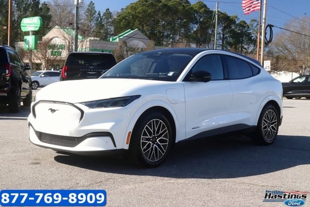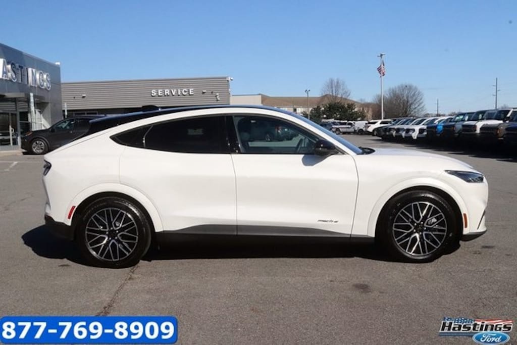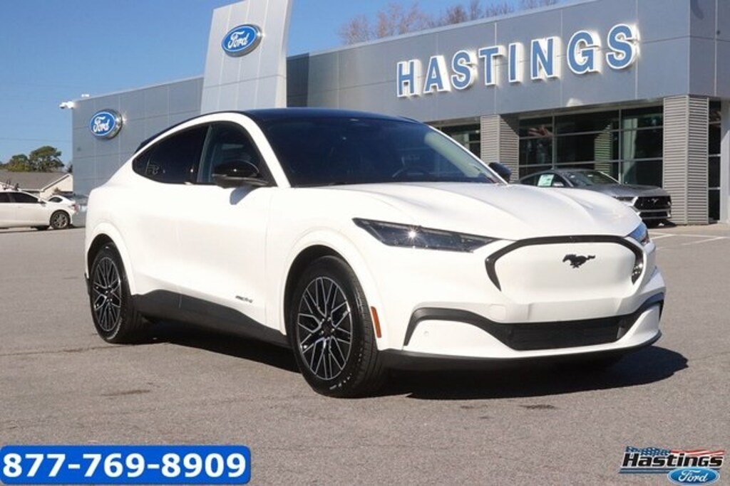 White Metallic 2025 Ford Mustang Mach-E Premium RWD Single-Speed Automatic Electric Motor Mustang Mach-E Premium, 4D Sport Utility, Electric Motor, Single-Speed Automatic, RWD, White Metallic, Black Onyx Premium Synthetic, 10 Speakers, 1st & 2nd Row Floor Liners w/o Carpet Mats, 4-Wheel Disc Brakes, ABS brakes, Air Conditioning, Alloy wheels, AM/FM radio: SiriusXM with 360L, Apple CarPlay/Android Auto, Auto High-beam Headlights, Auto-dimming Rear-View mirror, Automatic temperature control, Brake assist, Bumpers: body-color, Cargo Area Cover, Cargo Floor Liner, Compass, Delay-off headlights, Driver door bin, Driver vanity mirror, Dual front impact airbags, Dual front side impact airbags, Electronic Stability Control, Emergency communication system: 911 Assist, Equipment Group 300A Standard Package, Exterior Parking Camera Rear, Four wheel independent suspension, Front anti-roll bar, Front Bucket Seats, Front Center Armrest, Front dual zone A/C, Front License Plate Bracket, Front reading lights, Fully automatic headlights, Garage door transmitter, Heated door mirrors, Heated front seats, Heated steering wheel, Heated/Ventilated Perforated ActiveX Bucket Seats, Illuminated entry, Interior Protection Package, Internet access capable: FordPass Connect, Knee airbag, Low tire pressure warning, Memory seat, Mobile Power Cord (120V/240V), Navigation system: Connected Navigation, Occupant sensing airbag, Outside temperature display, Overhead airbag, Overhead console, Panic alarm, Panoramic Fixed-Glass Roof, Passenger door bin, Passenger vanity mirror, Power door mirrors, Power driver seat, Power Liftgate, Power passenger seat, Power steering, Power windows, Radio data system, Radio: B&O Sound System by Bang & Olufsen, Rain sensing wipers, Rear anti-roll bar, Rear seat center armrest, Rear side impact airbag, Rear window defroster, Rear window wiper, Remote keyless entry, Security system, SiriusXM w/360L, Speed control, Speed-sensing steering, Speed-Sensitive Wipers, Split folding rear seat, Spoiler, Steering wheel mounted audio controls, SYNC 4A w/Enhanced Voice Recognition, Telescoping steering wheel, Tilt steering wheel, Traction control, Trip computer, Turn signal indicator mirrors, Variably intermittent wipers, Ventilated front seats, Wheels: 19" Bright Machined-Face Aluminum, Blue Cruze Capability, Mustang Mach-E Premium, 4D Sport Utility, Electric Motor, Single-Speed Automatic, RWD, White Metallic, Black Onyx Premium Synthetic.