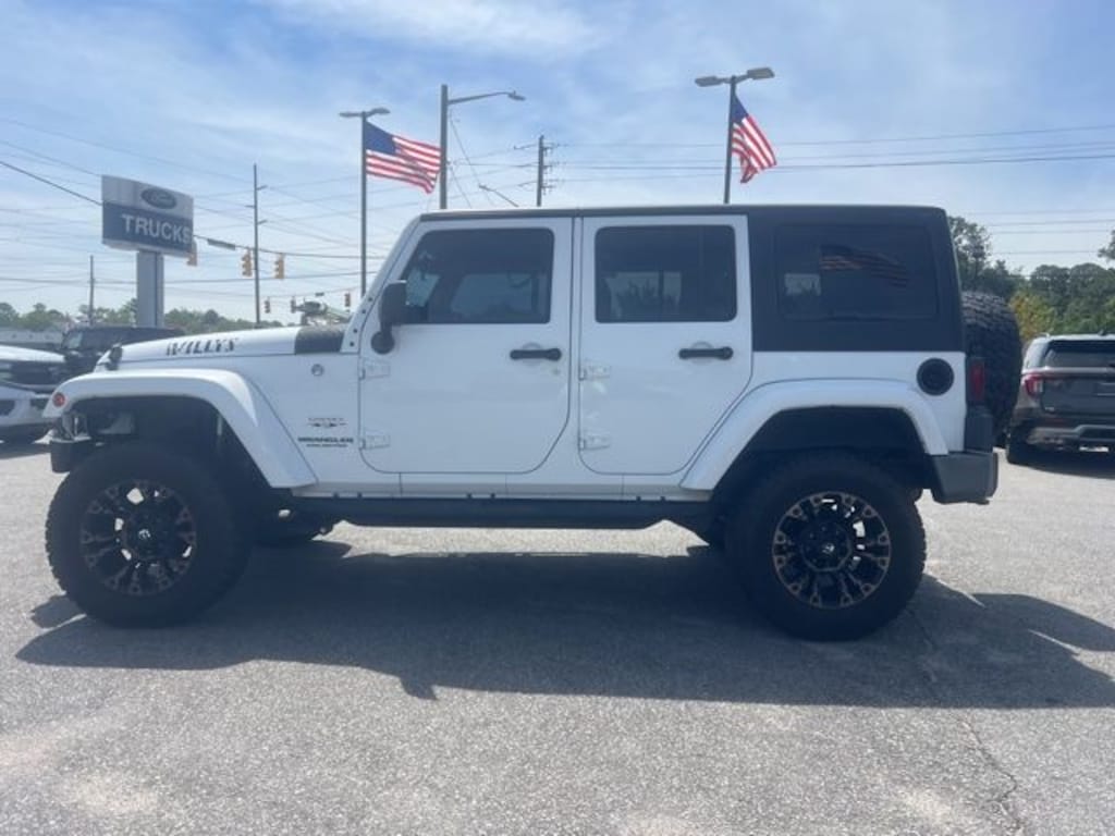 Bright White Clearcoat 2016 Jeep Wrangler Unlimited Sahara 4WD 5-Speed Automatic 3.6L V6 24V VVT Wrangler Unlimited Sahara, 4D Sport Utility, 3.6L V6 24V VVT, 5-Speed Automatic, 4WD, Bright White Clearcoat, Black w/Cloth Seats w/Adjustable Head Restraints, 18" x 7.5" Polished Satin Carbon Wheels, 3.21 Rear Axle Ratio, 4-Wheel Disc Brakes, 40GB Hard Drive w/28GB Available, 5-Year SiriusXM Travel Link Service, 6.5" Touchscreen Display, 8 Speakers, ABS brakes, Air Conditioning, Alloy wheels, AM/FM radio: SiriusXM, Audio Jack Input for Mobile Devices, Auto-dimming Rear-View mirror, Body Color Appliques Front Bumper, Body Color Appliques Rear Bumper, Body Color/Accent Color Grille, Brake assist, CD player, Cloth Seats w/Adjustable Head Restraints, Compass, Driver door bin, Driver vanity mirror, Dual front impact airbags, Electronic Stability Control, Front anti-roll bar, Front Bucket Seats, Front Center Armrest w/Storage, Front fog lights, Front reading lights, Fully automatic headlights, GPS Navigation, Heated door mirrors, Heavy Duty Suspension w/Gas Shocks, Illuminated entry, Integrated roll-over protection, Leather steering wheel, Leather Wrapped Steering Wheel, Low tire pressure warning, Occupant sensing airbag, Outside temperature display, Panic alarm, Passenger door bin, Passenger vanity mirror, Power door mirrors, Power steering, Power windows, Quick Order Package 24G, Radio data system, Radio: 130, Radio: 430N, Rear anti-roll bar, Remote keyless entry, Remote Start System, Remote USB Port, Security system, SiriusXM Travel Link, Speed control, Split folding rear seat, Steering wheel mounted audio controls, Sunrider Soft Top, Supplemental Front Seat Side Airbags, Tachometer, Tilt steering wheel, Traction control, Trip computer, Variably intermittent wipers, Wrangler Unlimited Sahara, 4D Sport Utility, 3.6L V6 24V VVT, 5-Speed Automatic, 4WD, Bright White Clearcoat, Black w/Cloth Seats w/Adjustable Head Restraints.