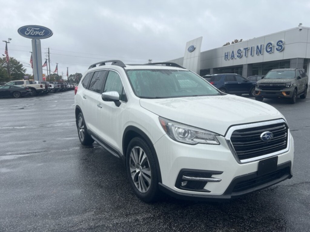 Crystal White Pearl 2022 Subaru Ascent Touring AWD Lineartronic CVT 2.4L 4-Cylinder DOHC 16V Ascent Touring, 4D Sport Utility, 2.4L 4-Cylinder DOHC 16V, Lineartronic CVT, AWD, Crystal White Pearl, Java Leather, 14 Speakers, 3rd row seats: bench, 4-Wheel Disc Brakes, ABS brakes, Air Conditioning, All-Weather Floor Liners, Alloy wheels, AM/FM radio: SiriusXM, Auto High-beam Headlights, Auto-Dimming Exterior Mirror w/Approach Light, Auto-dimming Rear-View mirror, Automatic temperature control, Axle Ratio: 4.44, Brake assist, Bumpers: body-color, Cargo Tray, CD player, Compass, Delay-off headlights, Driver door bin, Driver vanity mirror, Dual front impact airbags, Dual front side impact airbags, Electronic Stability Control, Emergency communication system: STARLINK Safety and Security (Subscription Required), Exterior Parking Camera Rear, Four wheel independent suspension, Front anti-roll bar, Front Bucket Seats, Front Center Armrest, Front dual zone A/C, Front fog lights, Front reading lights, Fully automatic headlights, Garage door transmitter: HomeLink, harman/kardon® Speakers, Heated & Ventilated Front Bucket Seats, Heated door mirrors, Heated front seats, Heated rear seats, Heated steering wheel, Illuminated entry, Knee airbag, Low tire pressure warning, Map & Reading Lights LED Upgrade - 6 Bulb Kit, Memory seat, Navigation System, Occupant sensing airbag, Outside temperature display, Overhead airbag, Overhead console, Panic alarm, Passenger door bin, Passenger vanity mirror, Perforated Leather-Trimmed Upholstery, Popular Package #2A, Power door mirrors, Power driver seat, Power Liftgate, Power moonroof, Power passenger seat, Power steering, Power windows, Radio data system, Radio: Subaru STARLINK 8.0" Multimedia Nav System, Rain sensing wipers, Rear air conditioning, Rear anti-roll bar, Rear Bumper Cover, Rear reading lights, Rear window defroster, Rear window wiper, Reclining 3rd row seat, Remote keyless entry, Security system, Speed control, Splash Guards, Split folding rear seat, Spoiler, Standard Model, STARLINK/Apple CarPlay/Android Auto, Steering wheel mounted audio controls, Tachometer, Telescoping steering wheel, Tilt steering wheel, Traction control, Trip computer, Turn signal indicator mirrors, Variably intermittent wipers, Ventilated front seats, Wheels: 20" x 7.5 J Dk Gray Alloy w/Machine Finish, Ascent Touring, 4D Sport Utility, 2.4L 4-Cylinder DOHC 16V, Lineartronic CVT, AWD, Crystal White Pearl, Java Leather.