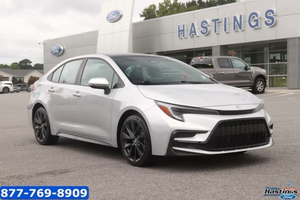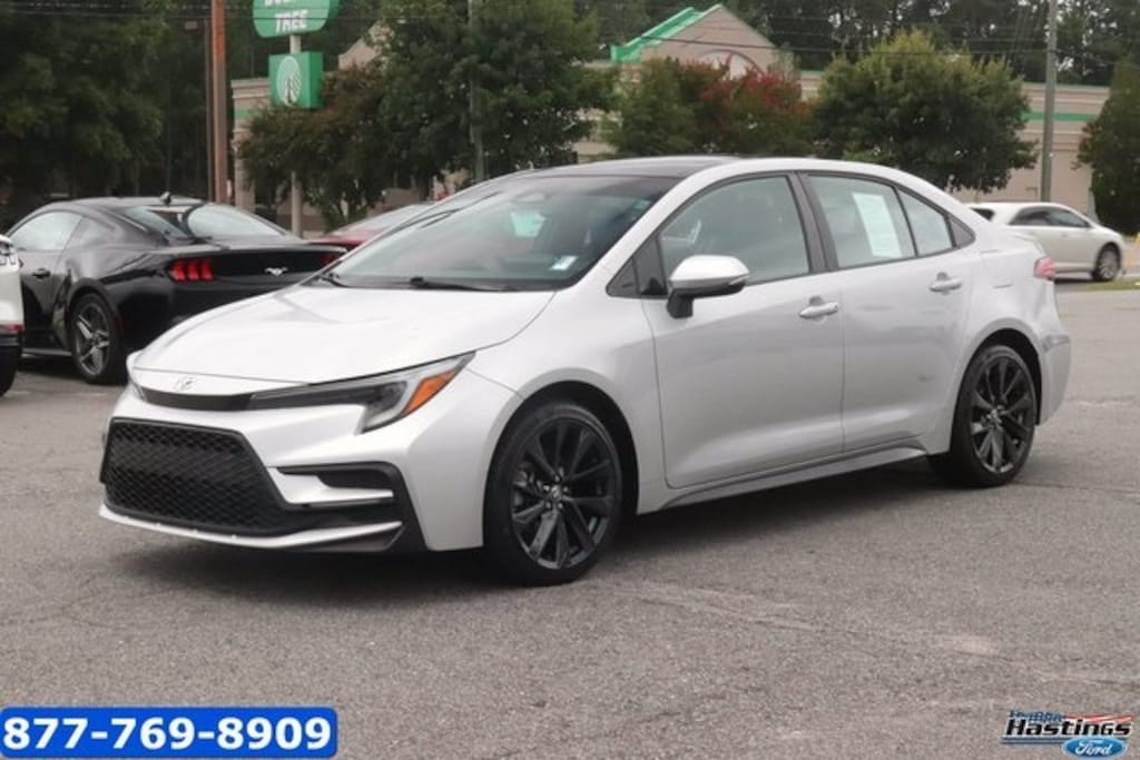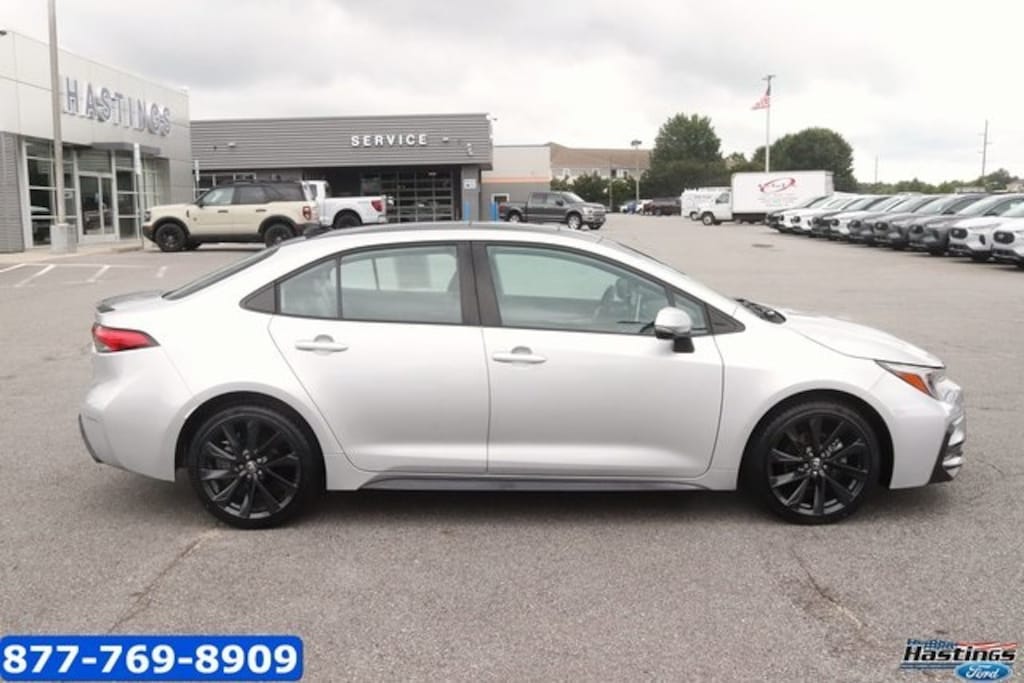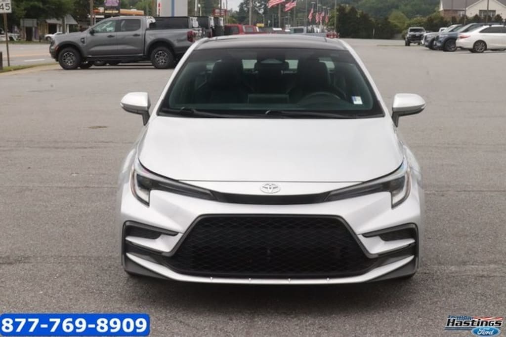 Classic Silver Metallic 2023 Toyota Corolla XSE FWD CVT 2.0L I4 DOHC 16V Corolla XSE, 4D Sedan, 2.0L I4 DOHC 16V, CVT, FWD, Classic Silver Metallic, Light Gray w/Premium Fabric Seat Trim, Navigation system: Drive Connect Cloud Navigation (1-year trial subscription), 4-Wheel Disc Brakes, 6 Speakers, ABS brakes, Air Conditioning, Alloy wheels, AM/FM radio: SiriusXM, Auto High-beam Headlights, Automatic temperature control, Brake assist, Bumpers: body-color, Delay-off headlights, Driver door bin, Driver vanity mirror, Dual front impact airbags, Dual front side impact airbags, Electronic Stability Control, Emergency communication system: Safety Connect (up to 10-year trial subscription), Exterior Parking Camera Rear, Four wheel independent suspension, Front anti-roll bar, Front Bucket Seats, Front Center Armrest, Front reading lights, Fully automatic headlights, Heated door mirrors, Heated front seats, Heated Front Sport Seats, Illuminated entry, Knee airbag, Leather steering wheel, Low tire pressure warning, Occupant sensing airbag, Outside temperature display, Overhead airbag, Panic alarm, Passenger door bin, Passenger vanity mirror, Power door mirrors, Power driver seat, Power moonroof, Power steering, Power windows, Radio data system, Radio: 8" Toyota Audio Multimedia, Rear anti-roll bar, Rear seat center armrest, Rear side impact airbag, Rear window defroster, Remote keyless entry, SofTex Seat Trim, Speed control, Split folding rear seat, Spoiler, Steering wheel mounted audio controls, Tachometer, Telescoping steering wheel, Tilt steering wheel, Traction control, Trip computer, Turn signal indicator mirrors, Variably intermittent wipers, Wheels: 18" Alloy w/Graphite Finish, Corolla XSE, 4D Sedan, 2.0L I4 DOHC 16V, CVT, FWD, Classic Silver Metallic, Light Gray w/Premium Fabric Seat Trim, Navigation system: Drive Connect Cloud Navigation (1-year trial subscription).